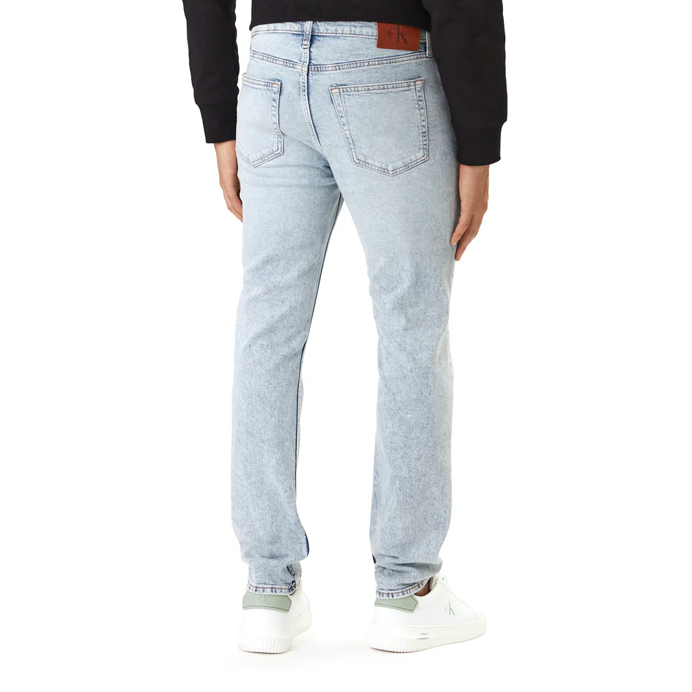 I jeans Calvin Klein da uomo, collezione primavera/estate, combinano comfort, qualità e stile contemporaneo. Realizzati in denim elasticizzato, offrono una vestibilità slim tapered, aderente in vita e con gamba affusolata verso la caviglia, ideale per valorizzare la silhouette maschile.