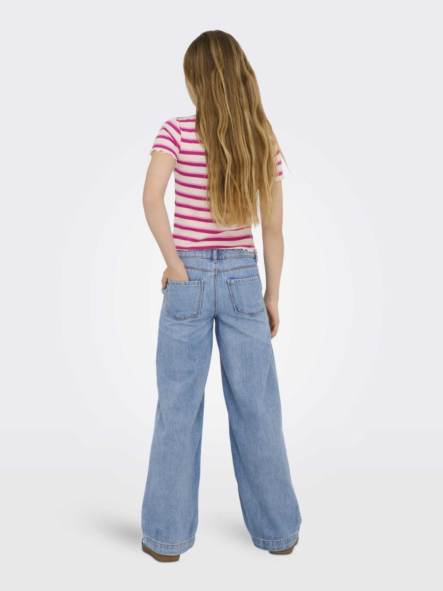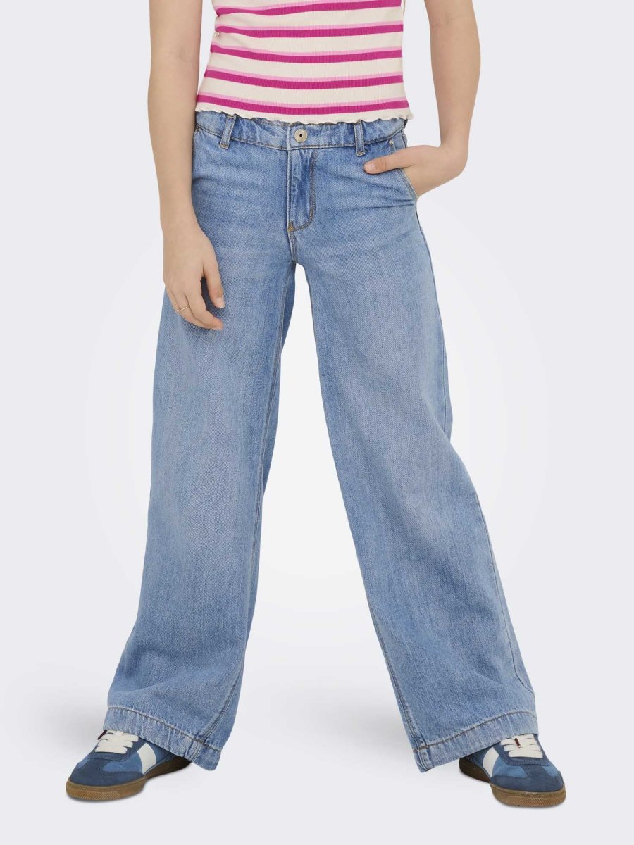 Scopri il piacere di indossare jeans versatili e comodi, perfetti sia per il tempo libero che per le occasioni più informali. Questi jeans da bambina a gamba ampia uniscono stile e funzionalità, con una vestibilità ampia dai fianchi alla caviglia che garantisce massimo comfort e libertà di movimento. Dotati di patta e passanti per cintura, sono completati da pratiche tasche posteriori, ideali per un look casual ma curato. Firmati ONLY kids, sono perfetti per la stagione autunno/inverno.