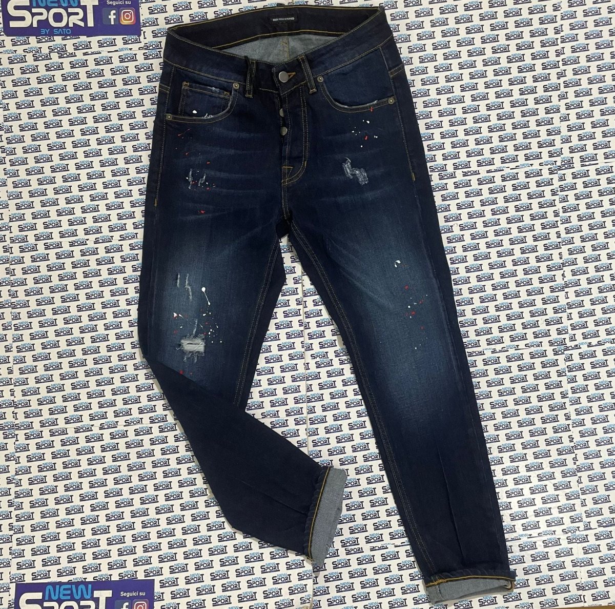 JEANS DENIM CON MACCHIE ROSSE