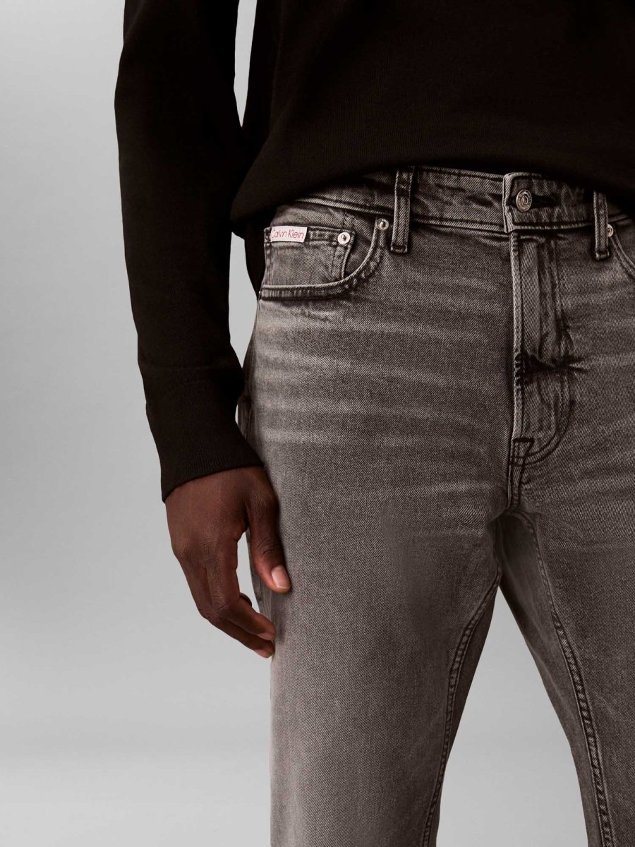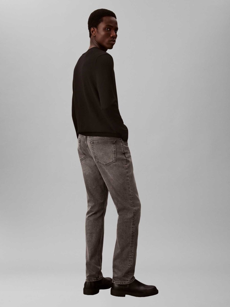 Jeans da uomo Calvin Klein della collezione primavera/estate, caratterizzati da una vestibilità slim che valorizza la silhouette mantenendo comfort e praticità. Il modello presenta una vita media e una linea moderna, ideale per un look contemporaneo e versatile. Realizzati con cura nei dettagli, sono arricchiti dall’etichetta Calvin Klein dal design anni ’80 sul taschino portamonete e dalla toppa in carta jacron con logo iconico applicata sul retro della vita. La patta con cerniera e la chiusura con bottone completano il design, rendendo questo jeans un capo essenziale, perfetto per outfit casual curati e di tendenza.