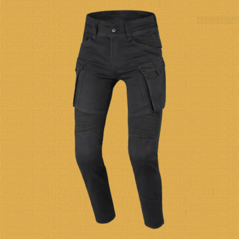 Ai lati della parte superiore delle gambe sono presenti due ampie tasche cargo. Sopra le ginocchia abbiamo optato per un tessuto a fisarmonica per offrire maggiore comfort e mobilità. Le cerniere sono posizionate alle caviglie per facilitare la vestizione.