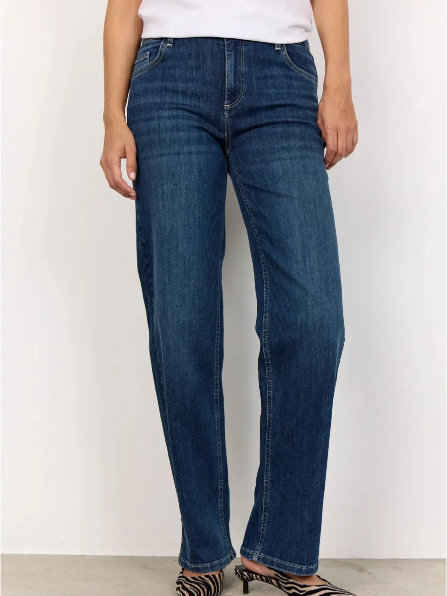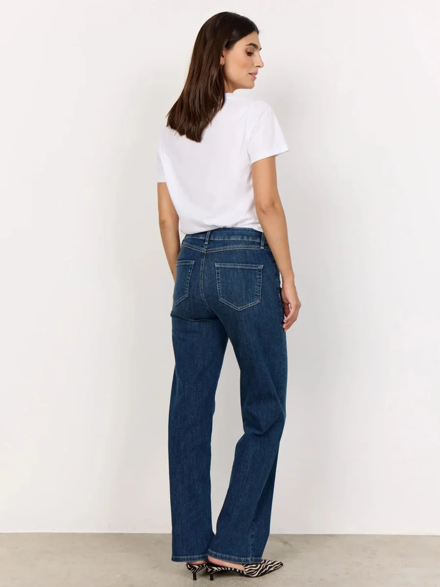I jeans Kimber da donna Soya Concept, della collezione primavera/estate, uniscono stile classico e comfort quotidiano. Realizzati in 81% cotone, 17% poliestere e 2% elastan, offrono una vestibilità morbida e flessibile. Il modello presenta una classica chiusura con bottone e zip, discrete cuciture a vista e un design a lunghezza intera, perfetto per creare look casual chic o più curati con semplicità.