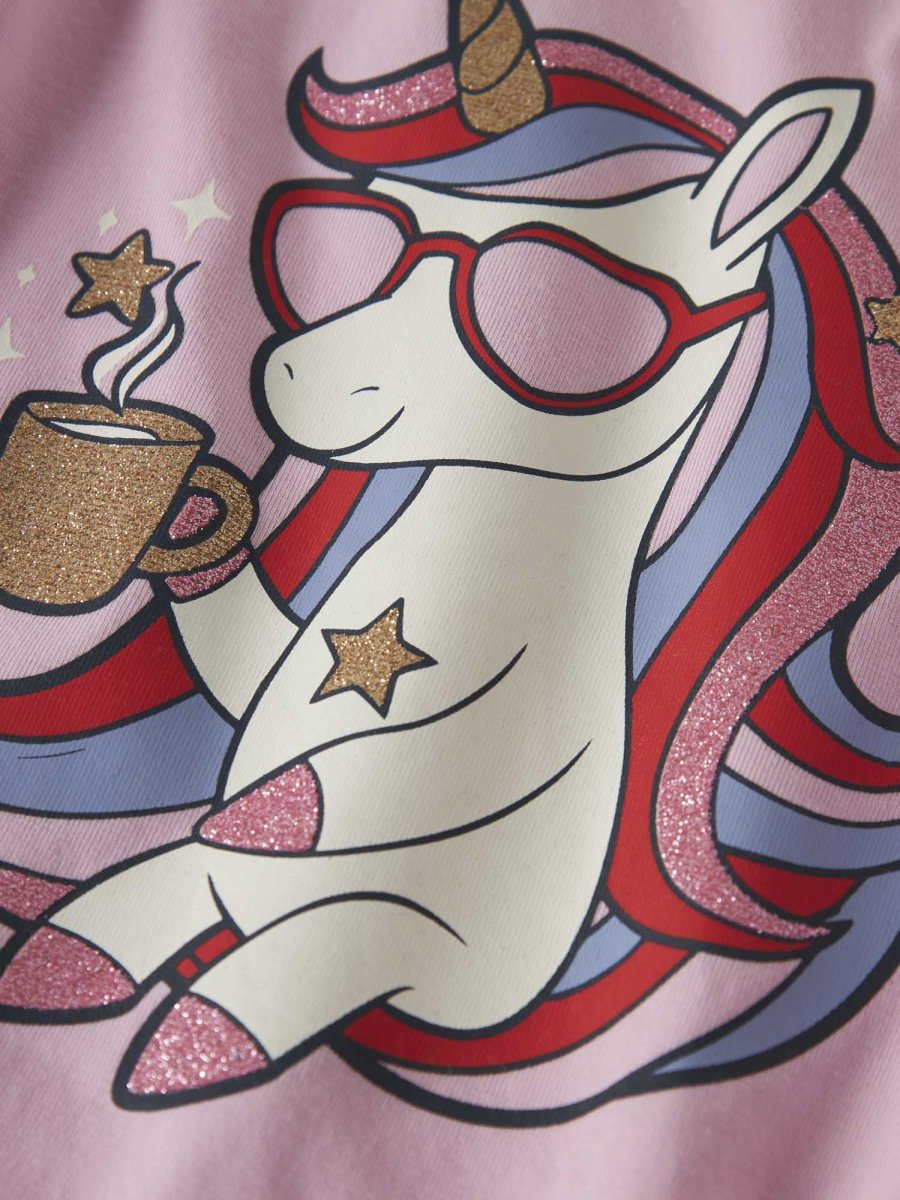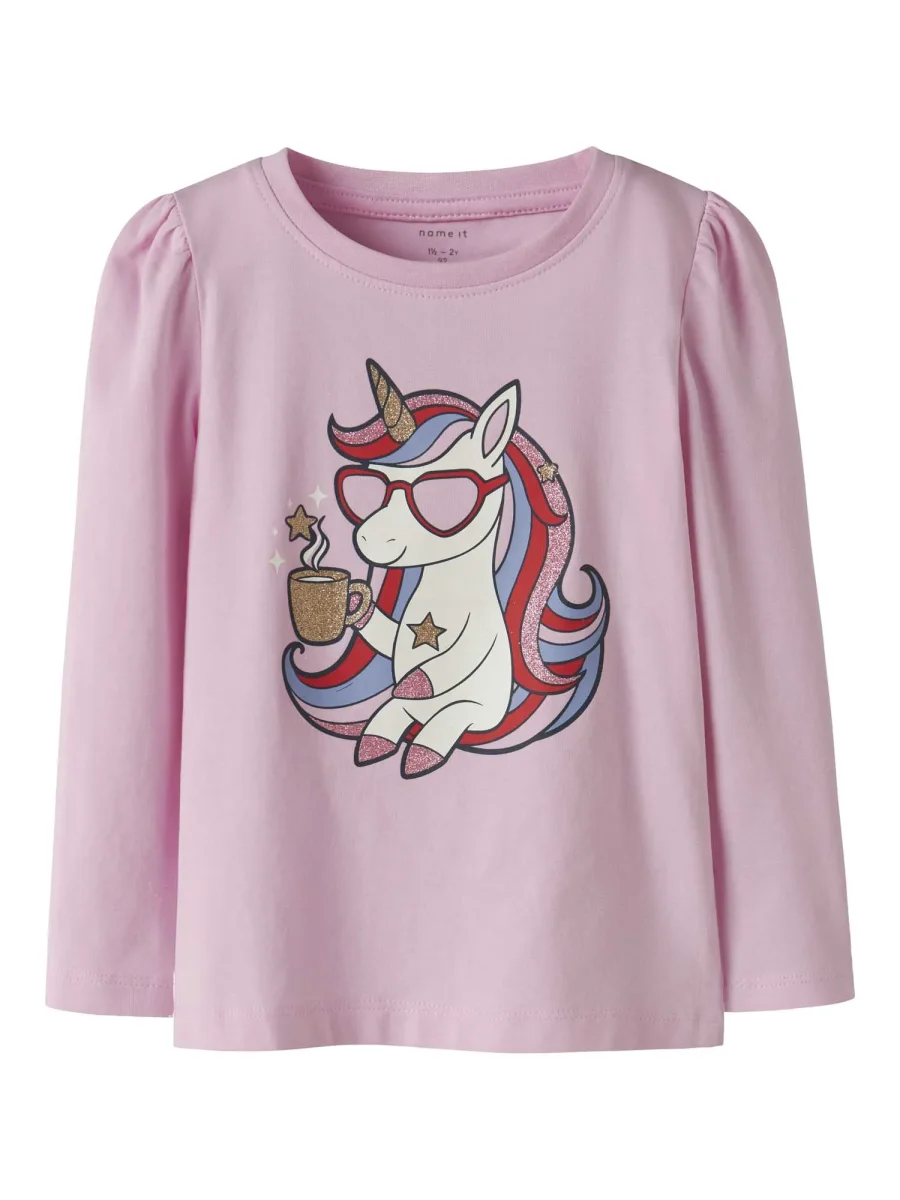 Questa maglia a maniche lunghe di Name It, parte della collezione autunno/inverno, è perfetta per le bambine che desiderano unire praticità e stile colorato. Realizzata in morbido cotone biologico, il capo si distingue per la stampa glitterata che regala un effetto luminoso e trendy, accompagnata da una stampa a pigmento che assicura una finitura delicata e soffice sul tessuto leggero. La vestibilità regular fit garantisce una calzata comoda e versatile.