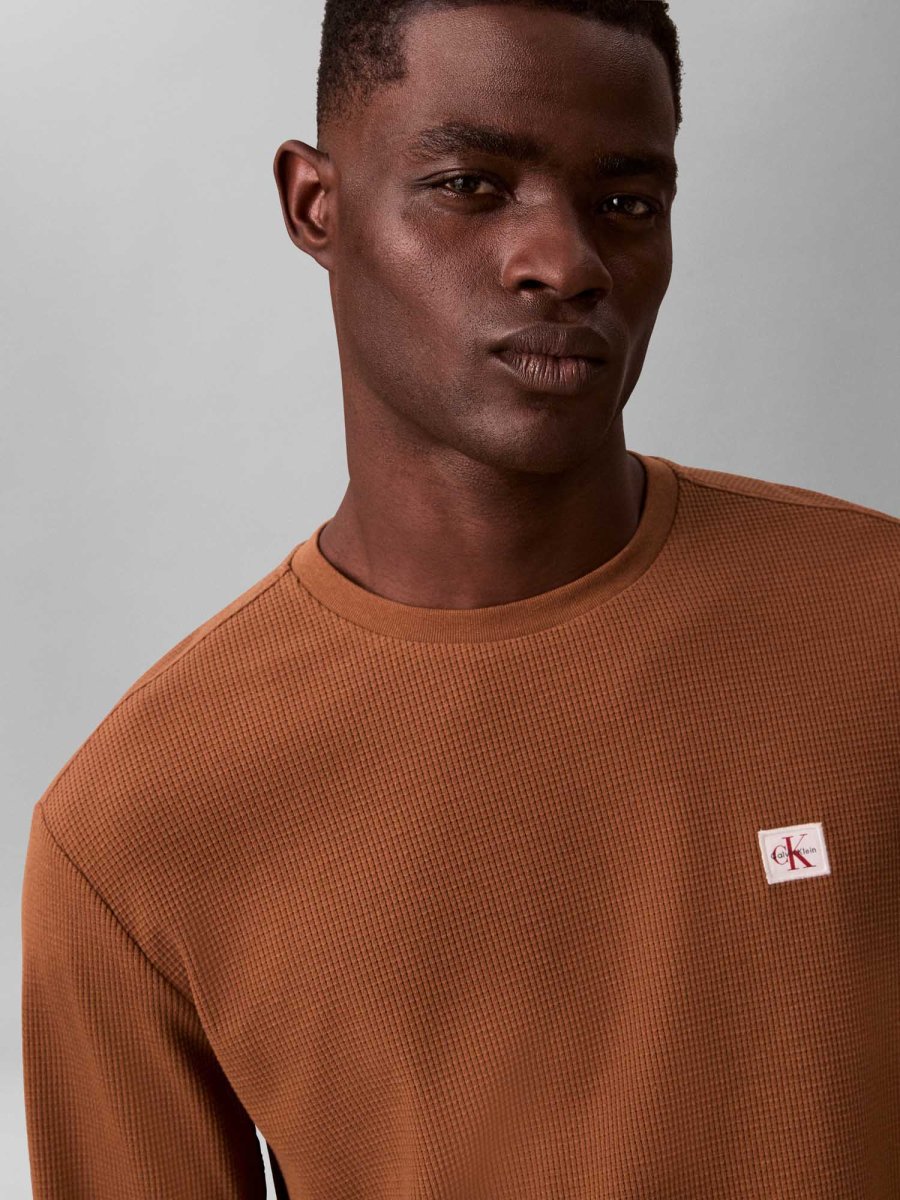 MAGLIA MARRONE CALVIN KLEIN JEANS WAFFLE BADGE DA UOMO