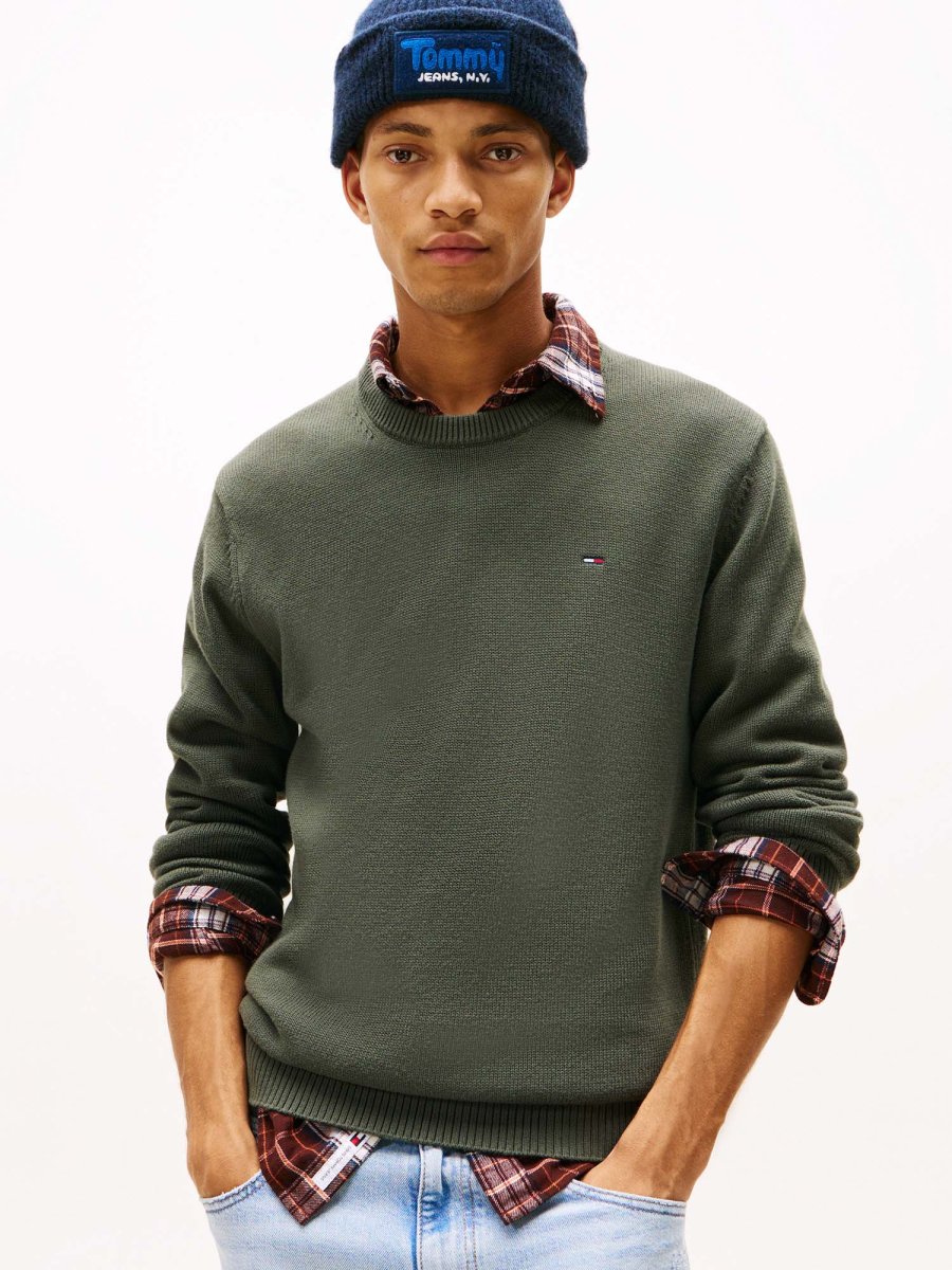 MAGLIONE OLIVA TOMMY JEANS ESSENTIALS LOGO DA UOMO