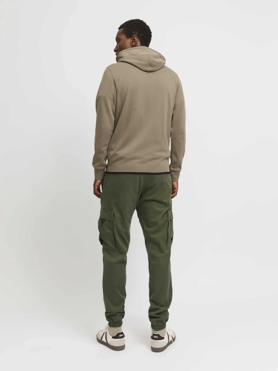 I pantaloni cargo da ragazzo firmati Jack&Jones, collezione autunno/inverno, si distinguono per la presenza di numerose tasche, come quelle laterali sulle gambe, pensate per offrire massima praticità e funzionalità. Realizzati in tessuto intrecciato resistente, questi pantaloni offrono durabilità e mantengono la loro forma. La vita media e la vestibilità relaxed fit assicurano una comodità ottimale, con una linea ampia e rilassata su cosce, ginocchia e fondo gamba, impreziosita da un orlo elesticizzato che aggiunge un tocco moderno.