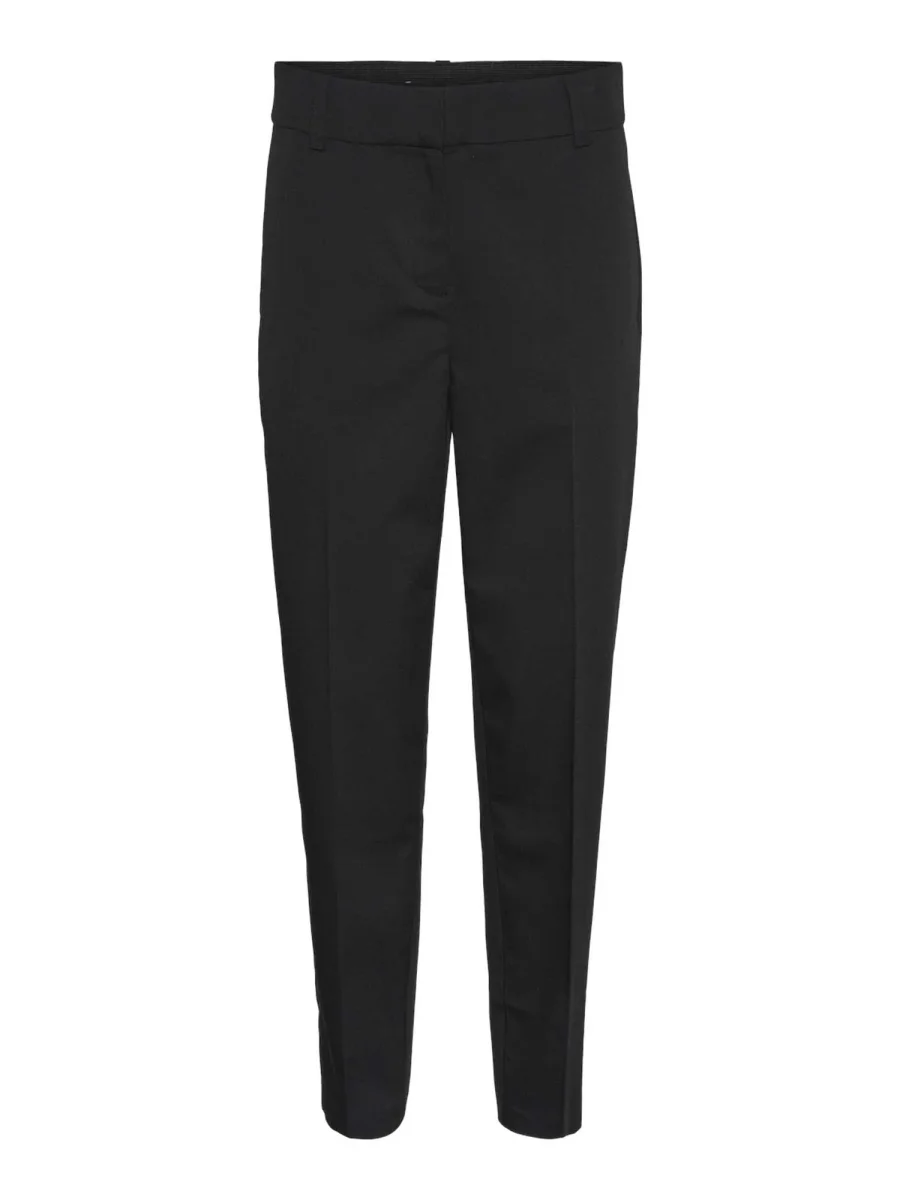 Che tu stia puntando a un look elegante da ufficio o a uno più casual con sneakers e t-shirt, i pantaloni in stile sartoriale sono un alleato di stile su cui puoi sempre contare. Questo modello da donna firmato Vero Moda, parte della collezione autunno/inverno, con vestibilità tapered fit e vita media, unisce comfort e raffinatezza in un taglio che valorizza la figura senza rinunciare alla praticità. Dotati di passanti per cintura, tasche frontali e chiusura con bottone a gancio e zip con patta, sono facili da abbinare e perfetti per creare outfit versatili.