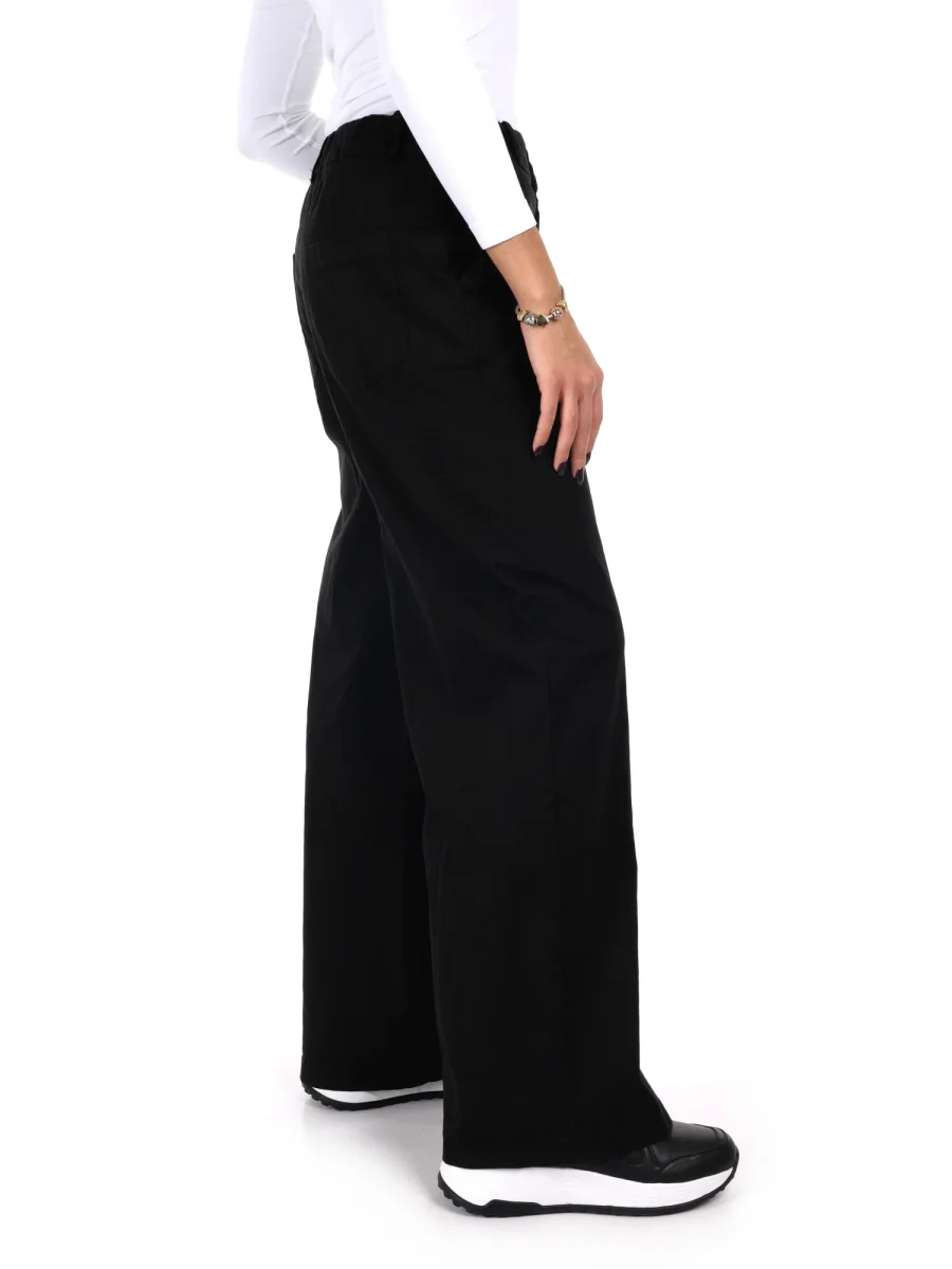Dai un tocco casual ma sempre curato ai tuoi look con il pantalone wide leg a vita alta da donna firmato Miss Love, parte della nuova collezione Autunno/Inverno. Realizzato in cotone ed elastan, è morbido, comodo e facile da indossare ogni giorno. La vita alta con passanti, elastico sul retro e chiusura con bottone e zip assicura una vestibilità confortevole e pratica. Le due tasche anteriori e posteriori aggiungono funzionalità e un tocco rilassato, ideale per outfit da giorno o per il tempo libero. Abbinalo a una t-shirt infilata o a un maglione oversize e sneakers per un look casual e di tendenza, perfetto per vivere la stagione con stile e comfort.