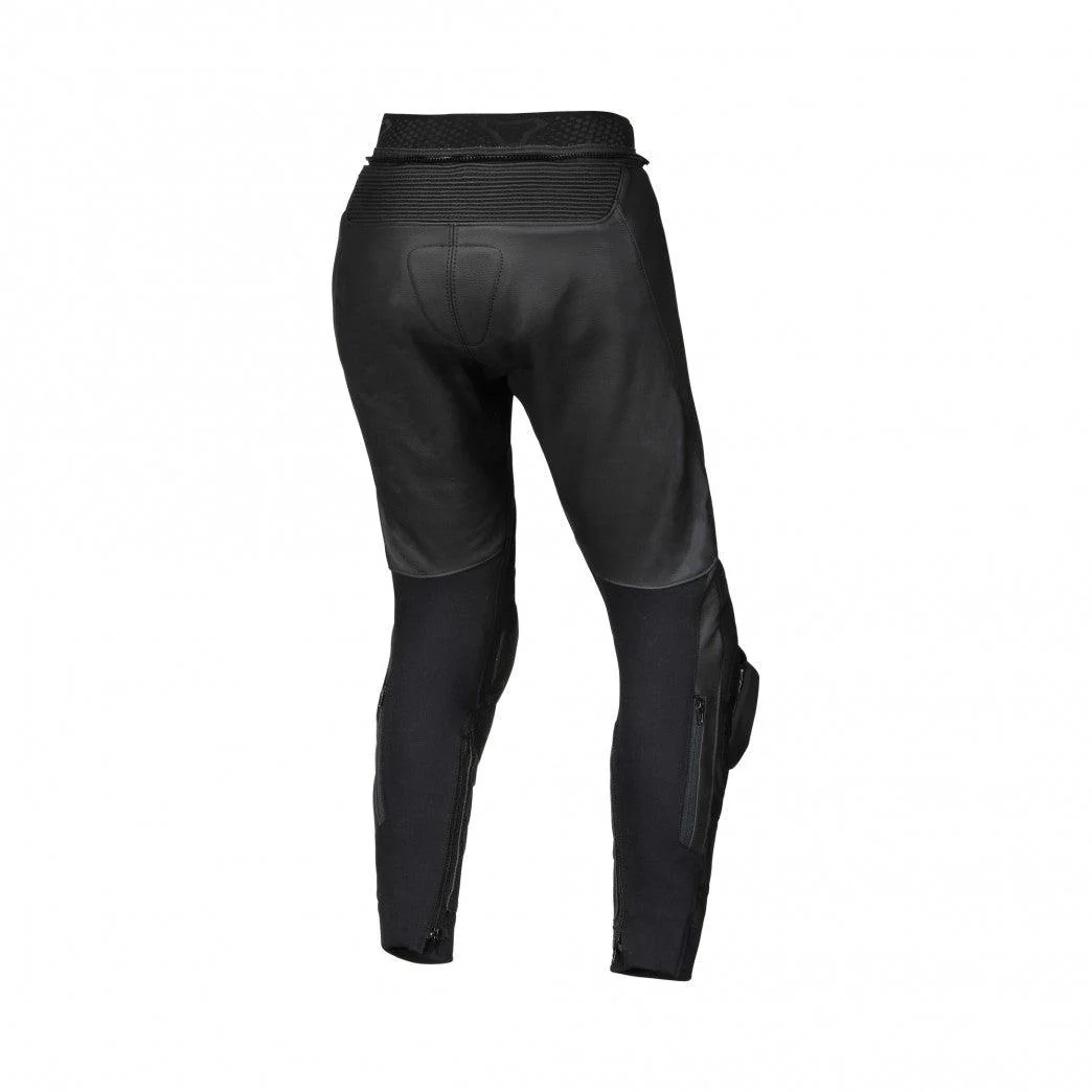 Pantalone in pelle Vario, dotato di ampie pannellature stretch per una ottima vestibilità, possibilità di applicare le saponette sulle ginocchia.