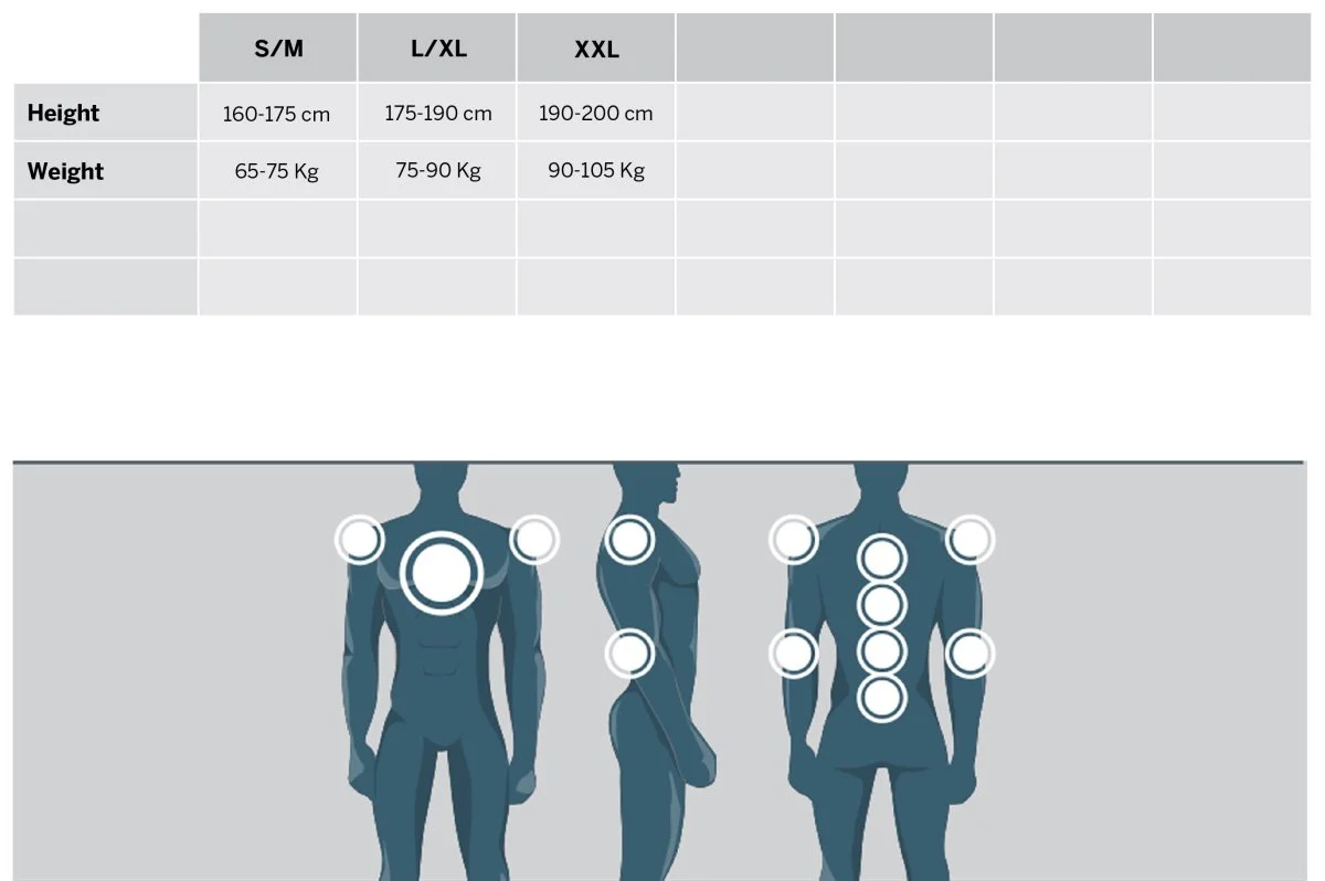 • Il basso spessore e la morbidezza della protezione busto e schiena sono studiate per impiego del neck-brace