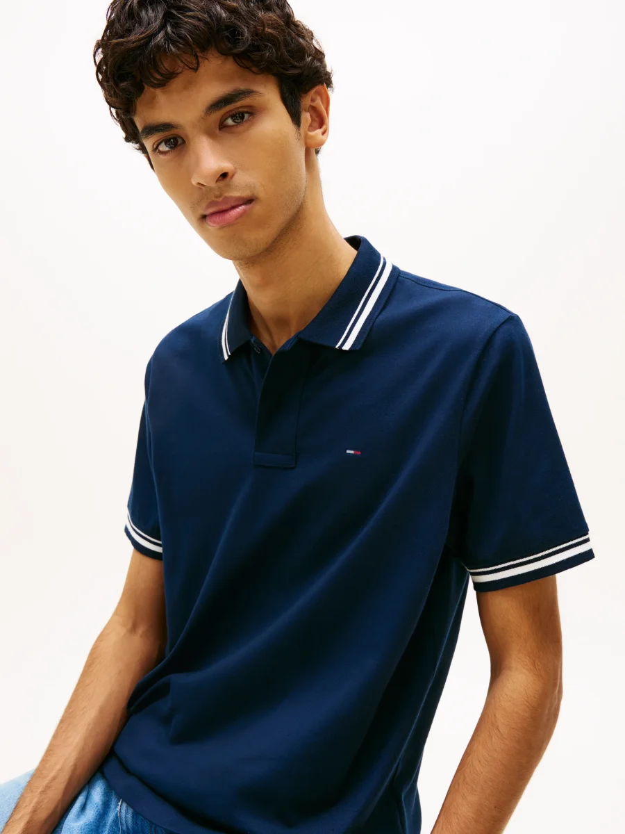 Il colletto a polo e il fondo manica con bordi a contrasto aggiungono un tocco dinamico al look, mentre la chiusura a due bottoni e la bandierina Tommy ricamata sul petto regalano carattere senza rinunciare all’eleganza casual tipica del brand. Grazie alla vestibilità regular fit, questa polo valorizza la silhouette con equilibrio, adattandosi con facilità a jeans, chino o pantaloni casual per outfit quotidiani e smart casual.