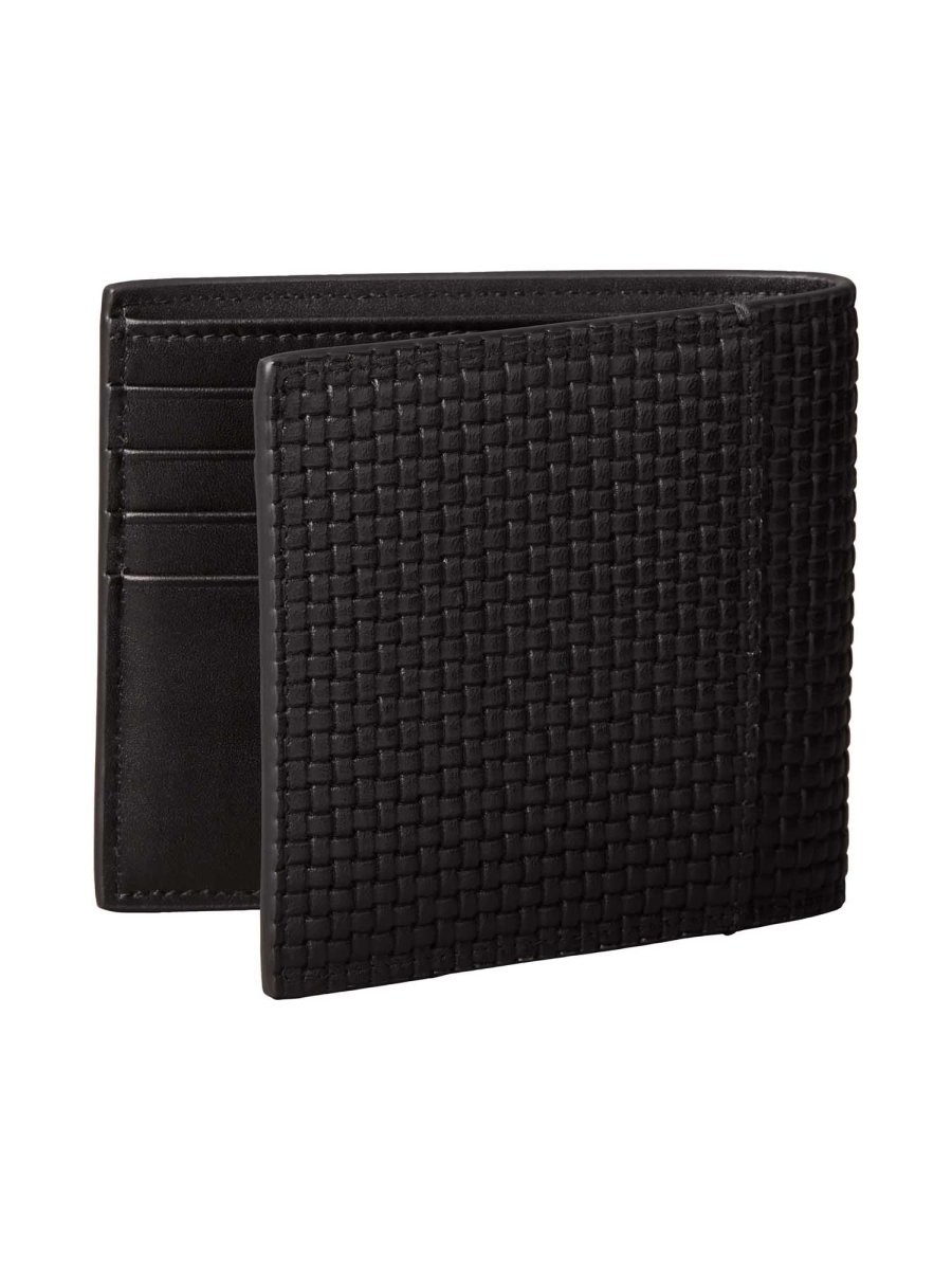 Realizzato in pelle goffrata con motivo a intreccio, si caratterizza per una texture raffinata e resistente, arricchita dall’etichetta con logo Calvin Klein che ne sottolinea l’identità. La struttura interna è progettata per offrire massima praticità: uno scomparto dedicato alle banconote, un portamonete integrato e diversi spazi organizzati per carte e documenti.