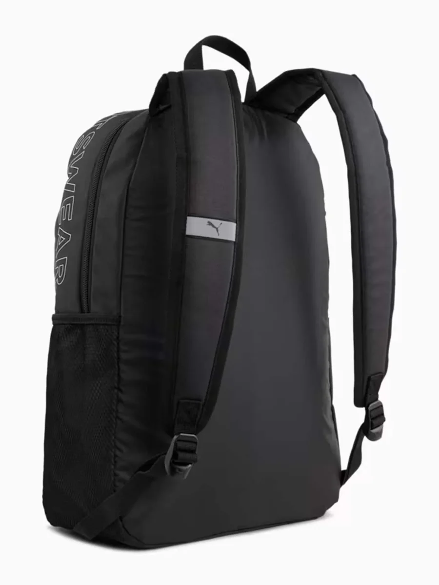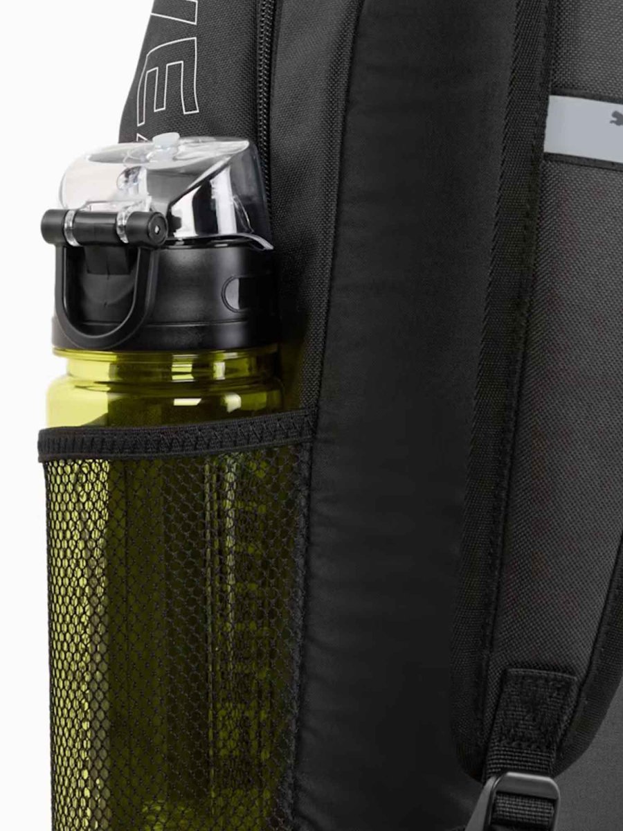 Zaino dinamico dotato di una morbida fodera firmato Puma, caratterizzato da apertura con cerniera bidirezionale nello scomparto principale, scomparto anteriore con cerniera, una tasca laterale in rete, pannello posteriore imbottito, spallacci regolabili, interno con tasca multiuso, rifinito il tutto con dettagli del brand.