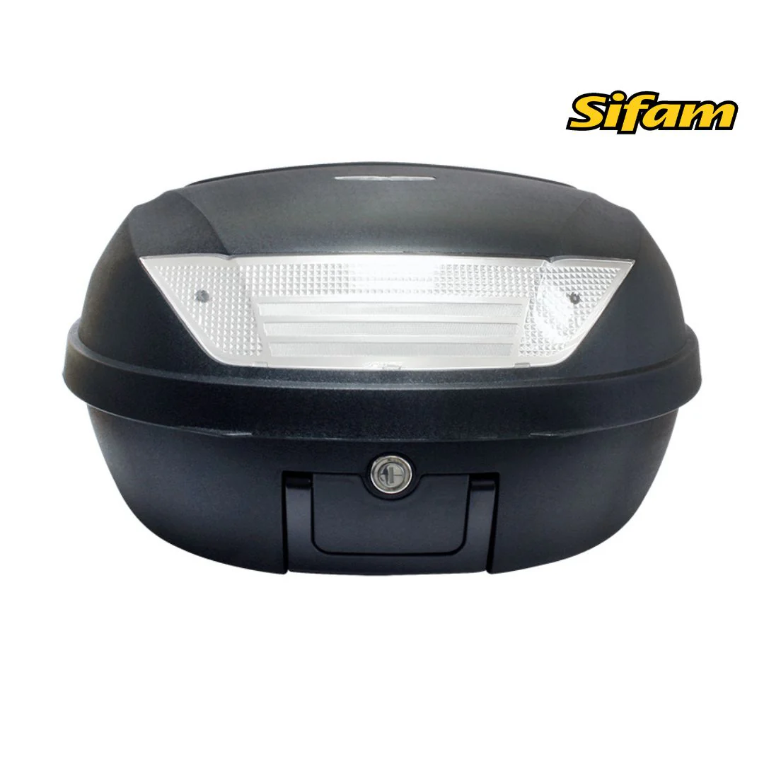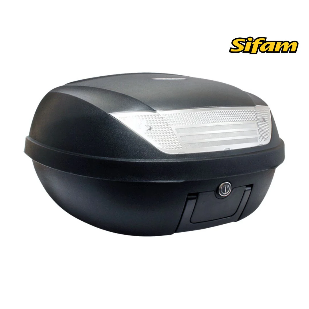 Il Bauletto S-Line da 52 litri, con finitura nero opaco, offre ampio spazio per due caschi. Completamente accessorato con piastra e maniglia, è ideale per chi cerca un topcase pratico e sicuro. Le sue dimensioni (58x45x32,5 cm) e l’impermeabilità lo rendono perfetto per ogni viaggio, offrendo protezione e stile.