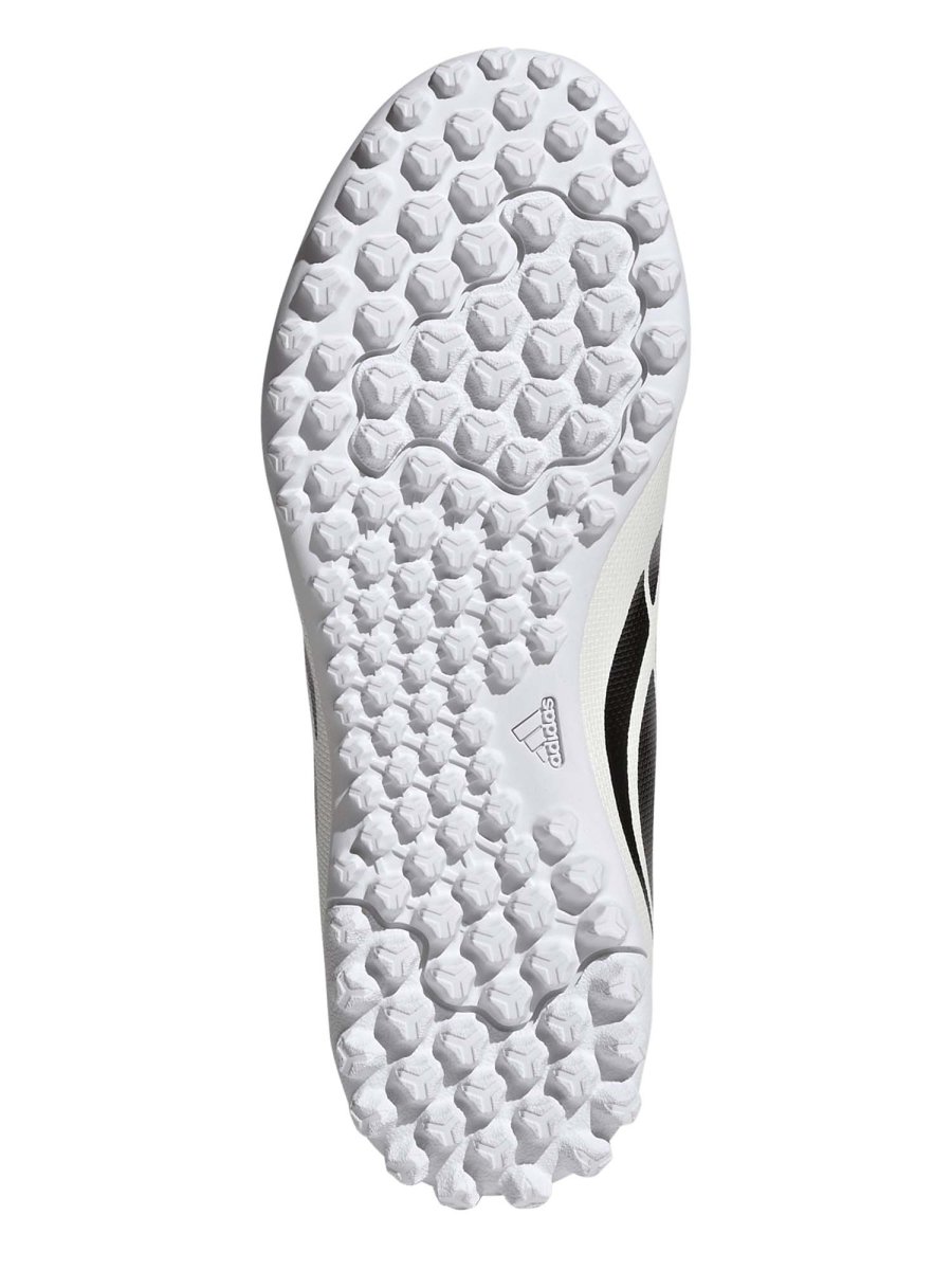 La suola Turf con piccoli tacchetti in gomma assicura aderenza perfetta e stabilità sui campi sintetici, permettendo cambi di direzione rapidi e movimenti fluidi. Il design aggressivo con le iconiche 3 strisce Adidas rende le scarpe sportive e riconoscibili, perfette per chi ama lo stile oltre alla performance.