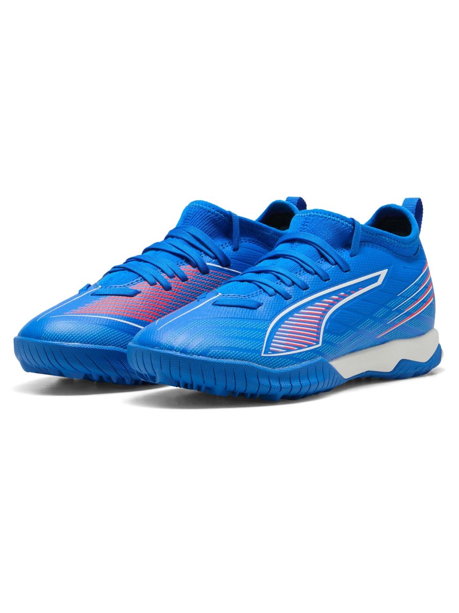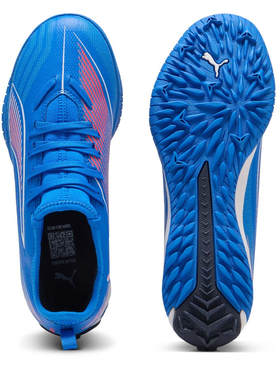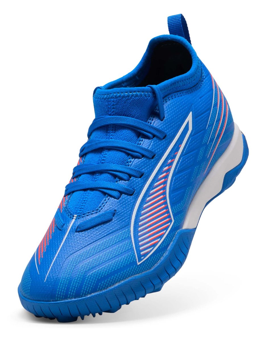 La PUMA ULTRA è la scarpa da calcetto pensata per i giovani atleti che cercano velocità e controllo su terreni artificiali duri e superfici in erba sintetica 2G. Grazie al telaio di supporto leggero, il piede viene stabilizzato durante i rapidi cambi di direzione, garantendo massima sicurezza e agilità. Il profilo basso della suola in gomma consente transizioni fluide tra superfici diverse senza perdere aderenza, mentre l’intersuola in EVA assicura un’ammortizzazione efficace per un comfort duraturo anche nelle partite più intense. La tomaia è realizzata in mesh tecnico leggero, che favorisce la traspirabilità, e il rivestimento GripControl assicura un controllo preciso e deciso della palla. Completano il design i classici lacci per una calzata sicura, un tacco piatto stabile e i loghi PUMA ben visibili, per un look sportivo e riconoscibile.