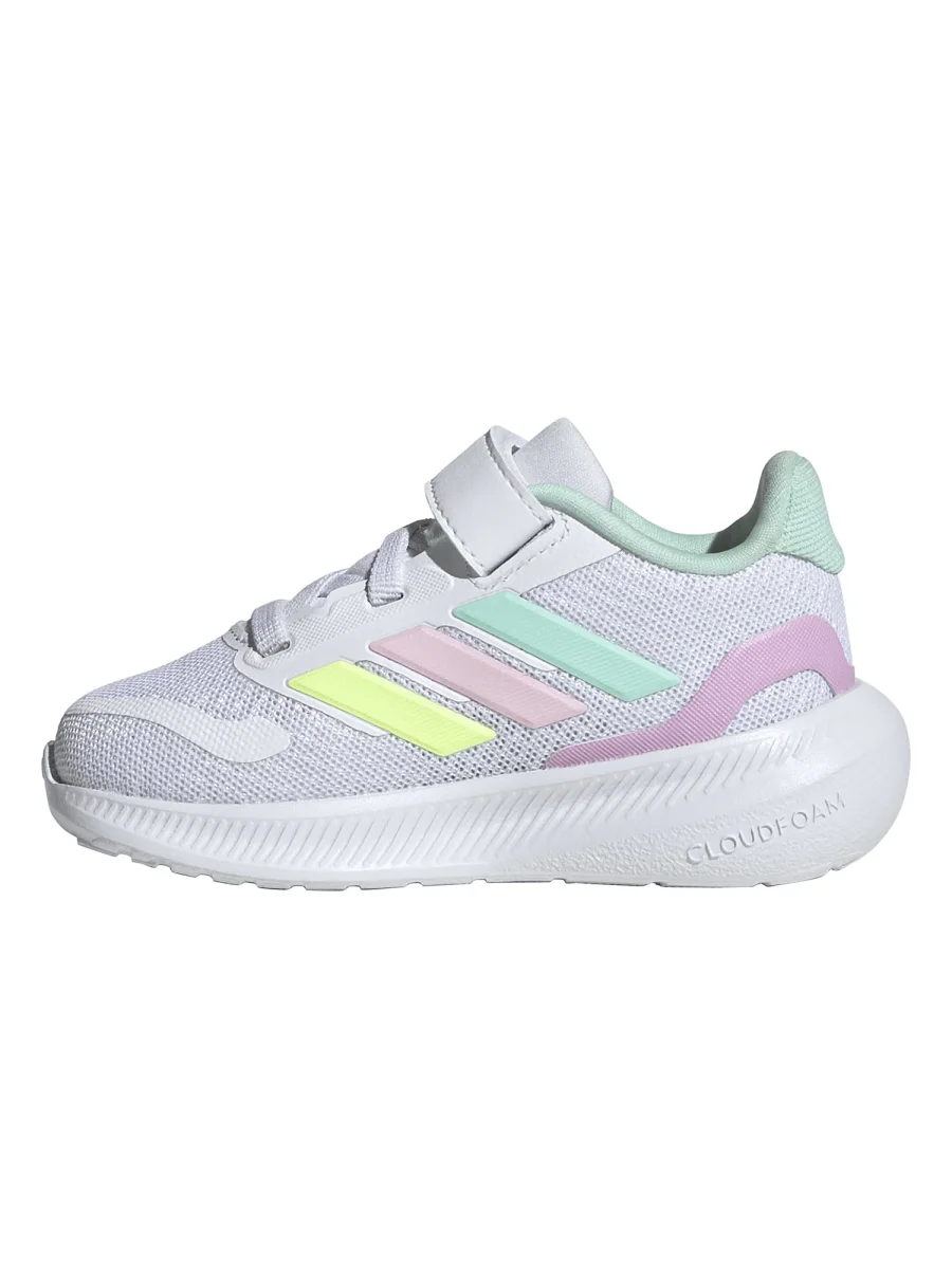 Le Adidas Runfalcon 5 sono le sneakers da bambina (infants) perfette per accompagnare i più piccoli nelle loro avventure quotidiane. La chiusura a strappo, insieme ai lacci elasticizzati, rende ogni mattina più semplice e veloce. La morbidezza della intersuola Cloudfoam e la leggerezza dell’EVA assicurano un comfort soffice come una nuvola, ideale per i passi in continua esplorazione. Realizzate in tessuto traspirante, mantengono i piedi freschi e comodi, mentre la componente riciclata testimonia un piccolo gesto verso un futuro più sostenibile.