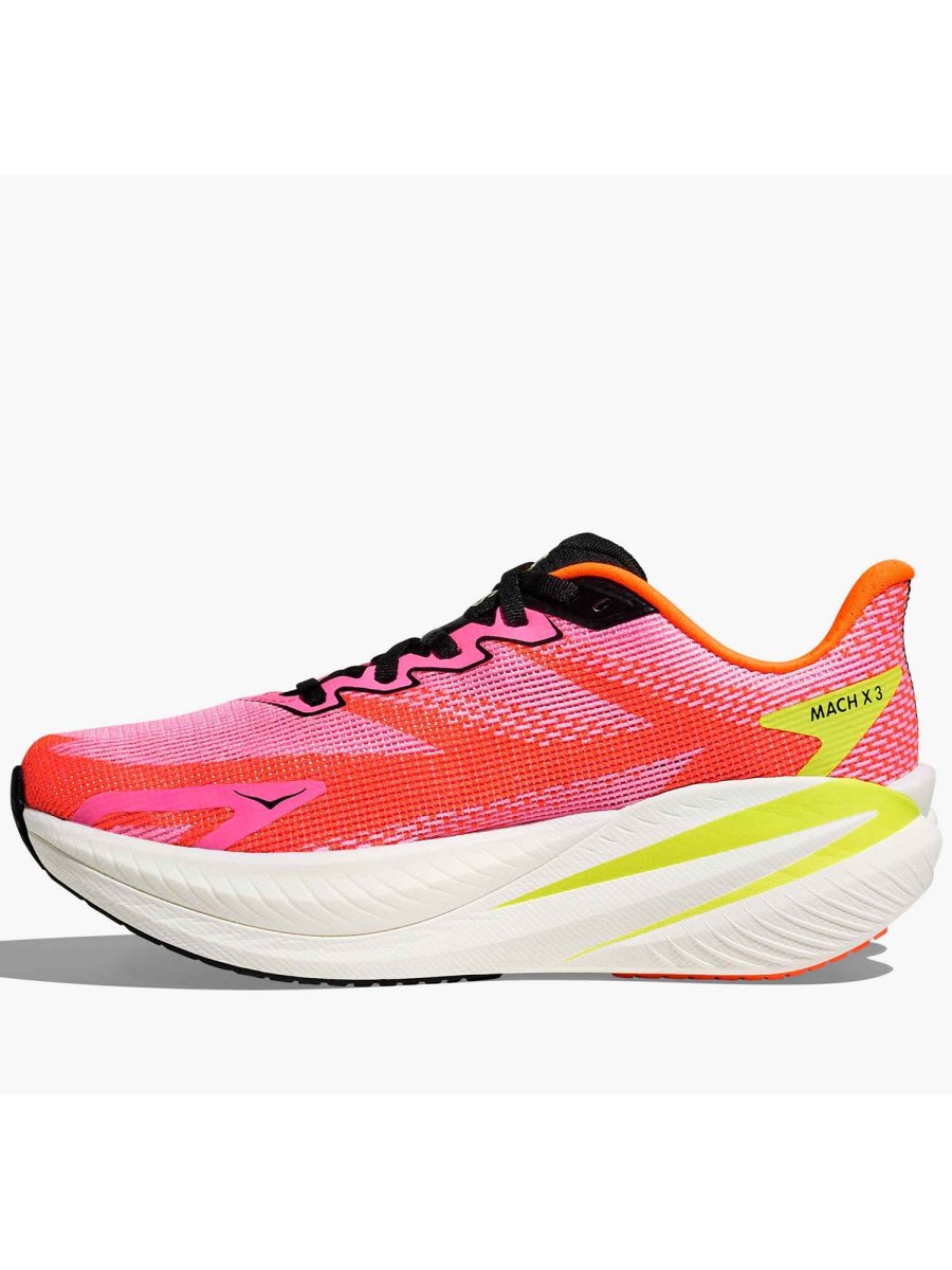 La Mach X 3 da donna è la scarpa HOKA pensata per le atlete che vogliono prestazioni da gara in un modello da allenamento quotidiano, con un design tecnico che unisce reattività, leggerezza e comfort su strada.
