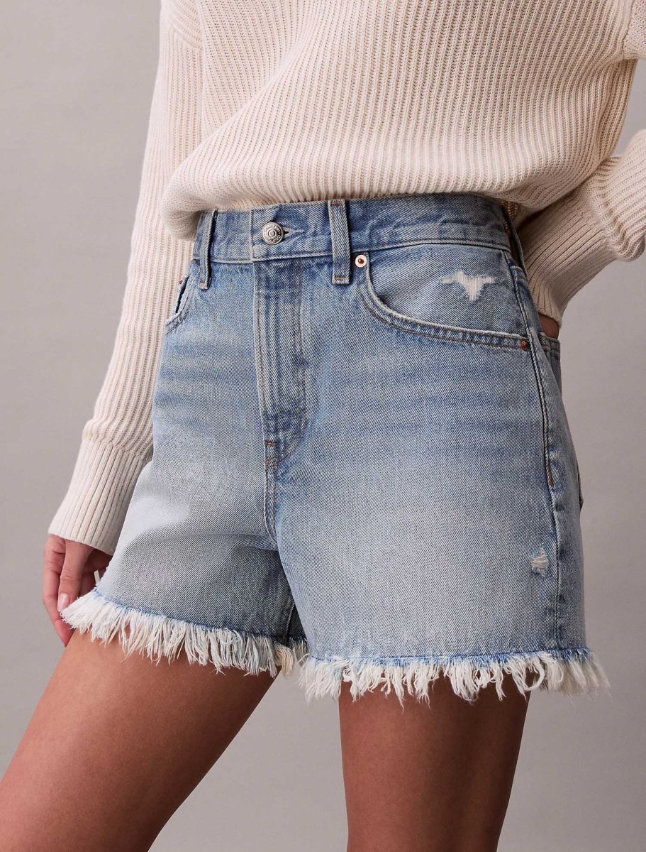 Il modello presenta chiusura con zip e bottone, il classico stile cinque tasche, rivetti con logo Calvin Klein e un’elegante etichetta in pelle sul retro. Il lavaggio azzurro e l’orlo sfilacciato conferiscono un effetto vissuto, casual e contemporaneo, ideale da abbinare a t-shirt, crop top o camicie leggere.