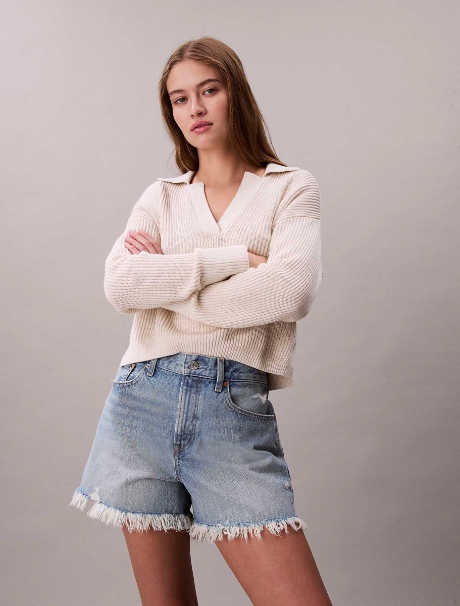 I short da donna Calvin Klein della nuova collezione primavera/estate reinterpretano lo stile anni ’90 con un tocco moderno. Realizzati in denim di cotone rigido, offrono resistenza, comfort e una vestibilità rilassata perfetta per i look estivi casual.