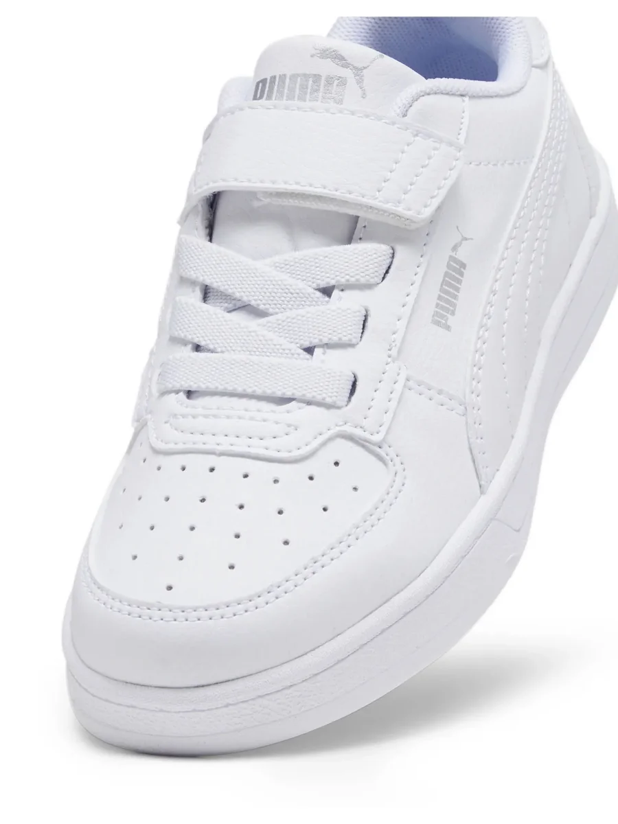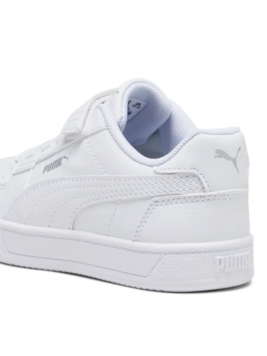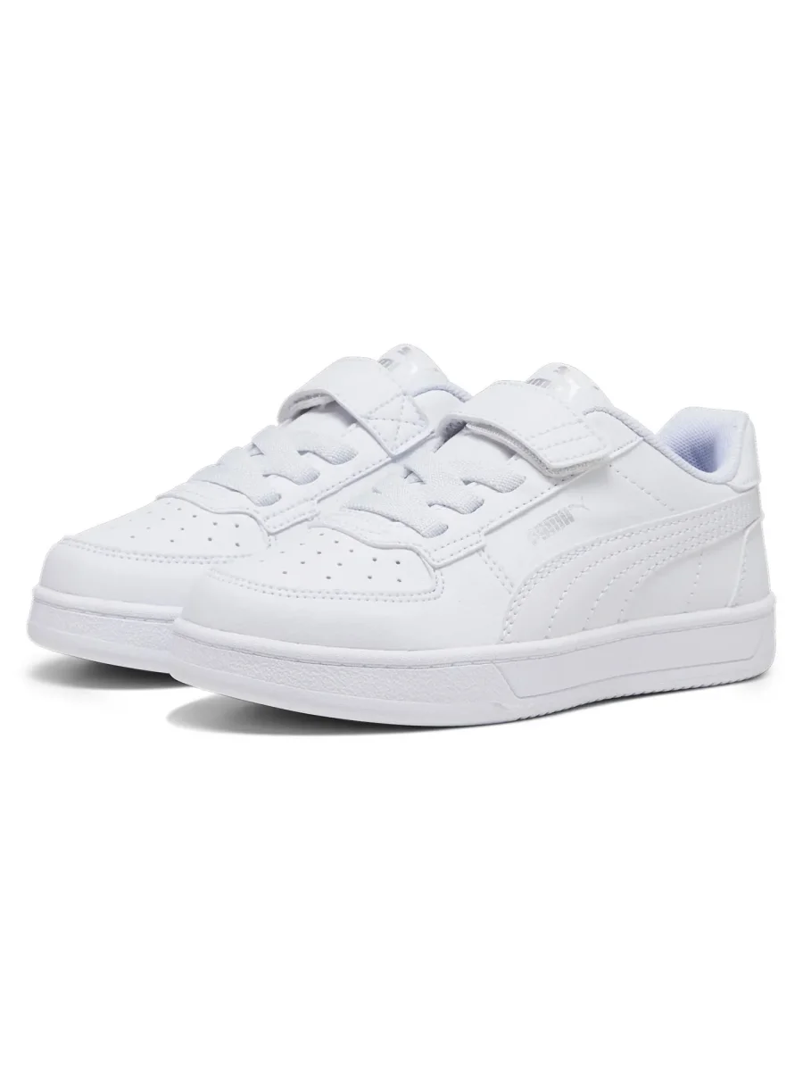 Sneakers unisex per bambini modello Caven 2.0 della collezione autunno/inverno Puma, realizzata con tomaia in materiale sintetico con il 20% di materiale riciclato, presenta chiusura con lacci elastici e chiusura a strap, soletta estraibile in gomma, fodera interna in tessuto.