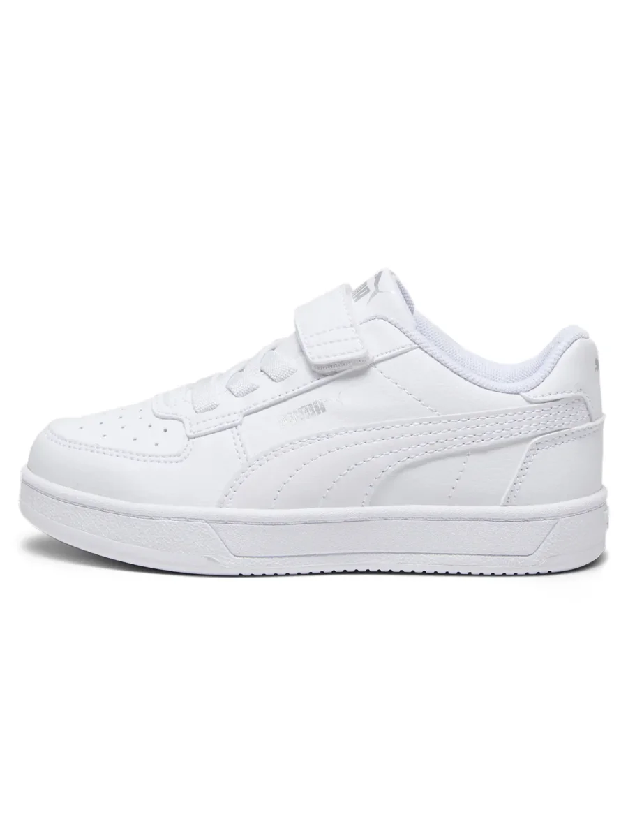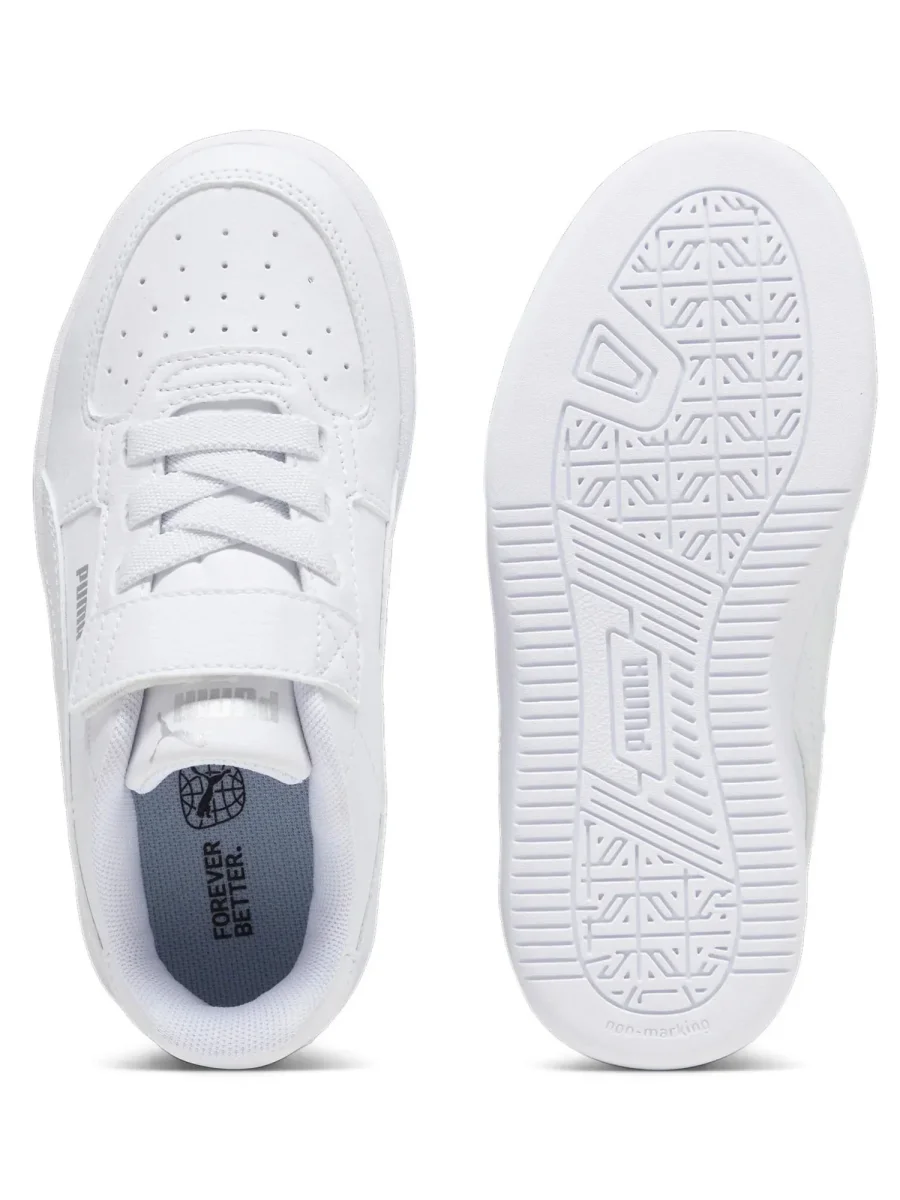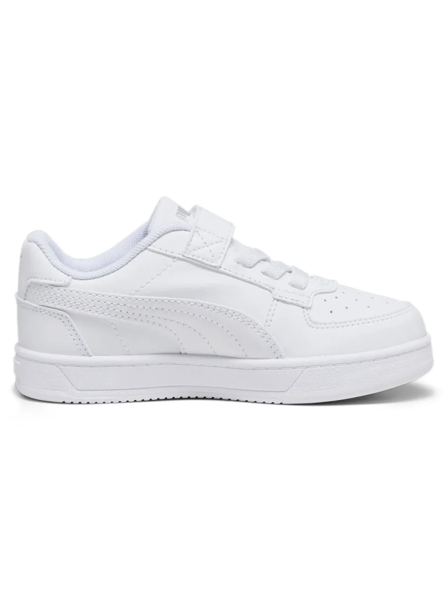 Sneakers unisex per bambini modello Caven 2.0 della collezione autunno/inverno Puma, realizzata con tomaia in materiale sintetico con il 20% di materiale riciclato, presenta chiusura con lacci elastici e chiusura a strap, soletta estraibile in gomma, fodera interna in tessuto.