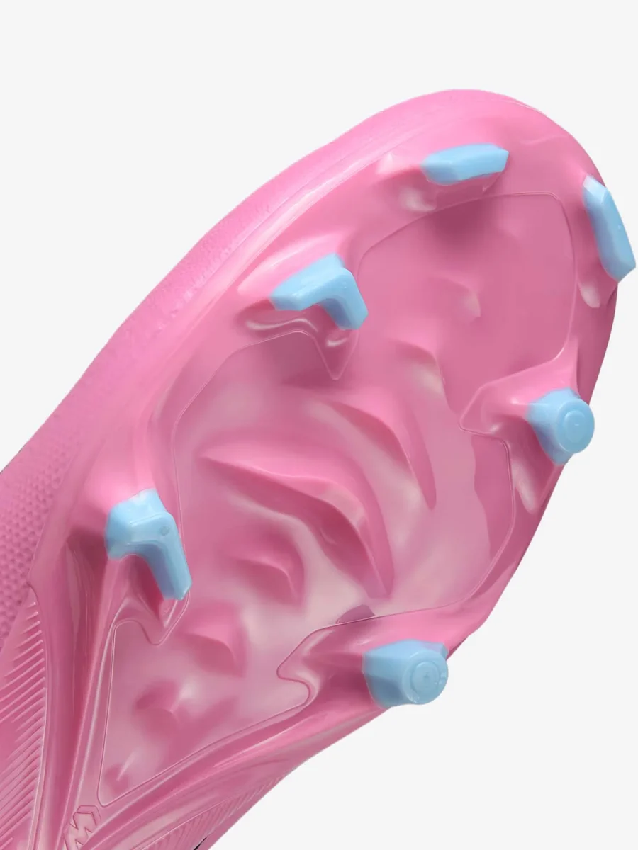 La suola multiterreno è progettata per garantire aderenza e trazione ottimali su superfici diverse, rendendola perfetta per allenamenti e gare su campi misti. Il design aerodinamico, aggressivo e moderno riflette l’identità della linea Mercurial, pensata per chi vuole dominare in velocità con stile e determinazione.