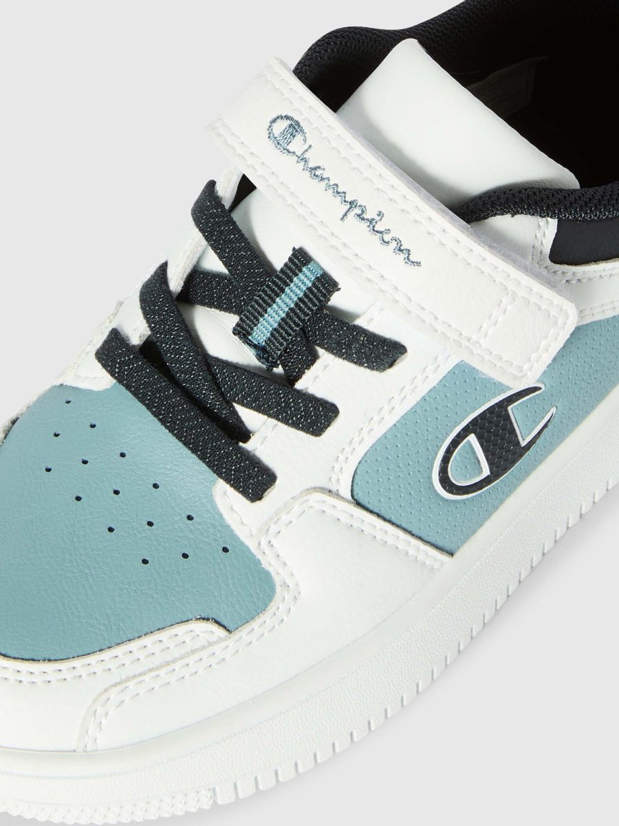Sneakers Champion da bambino, collezione primavera/estate, realizzate con tomaia in ecopelle, caratterizzate da finiture con logo, lacci elastici e chiusura in velcro, che permette di indossarlo più facilmente. Presenta fodera imbottita interna, rinforzo sul tallone.