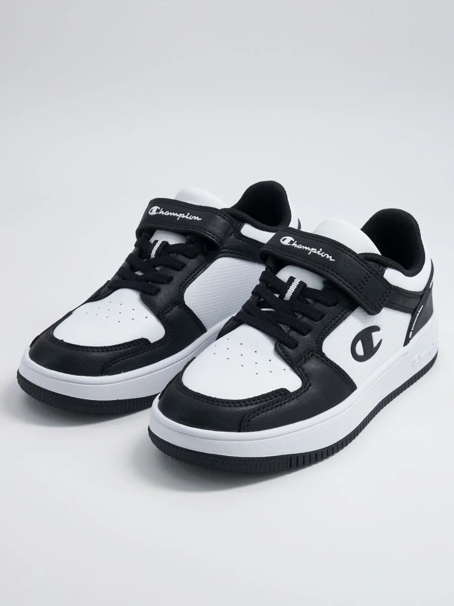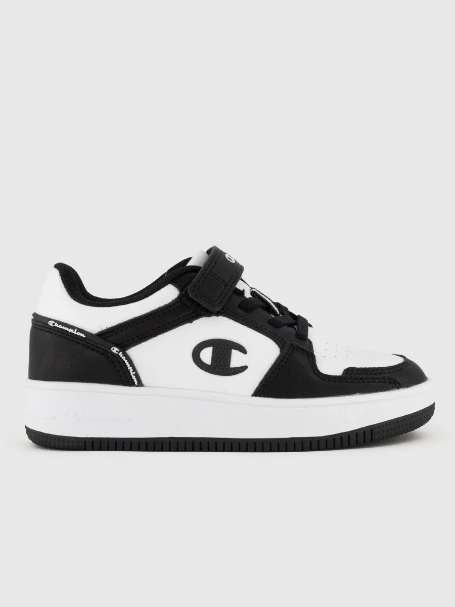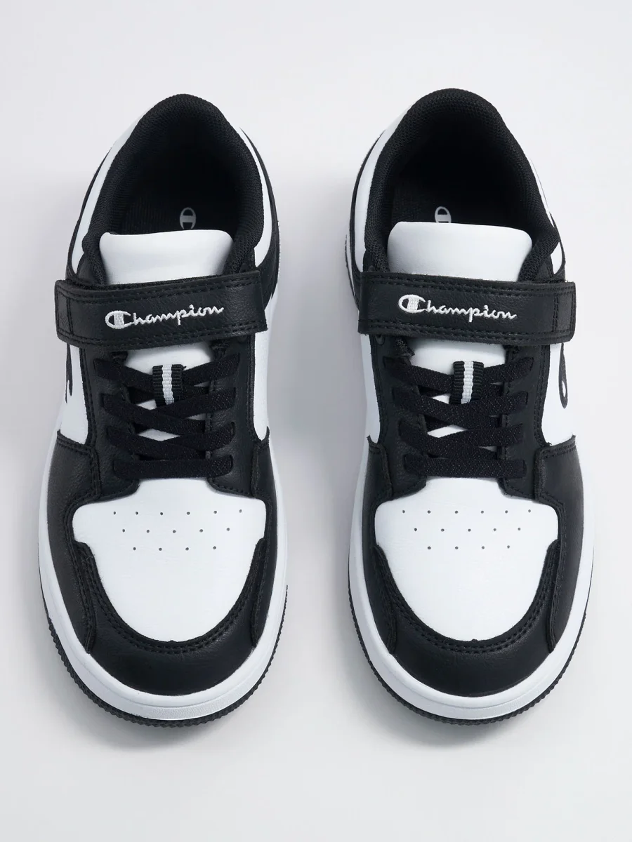 Sneakers Champion da bambino, collezione primavera/estate, realizzate con tomaia in ecopelle, caratterizzate da finiture con logo, lacci elastici e chiusura in velcro, che permette di indossarlo più facilmente. Presenta fodera imbottita interna, rinforzo sul tallone.