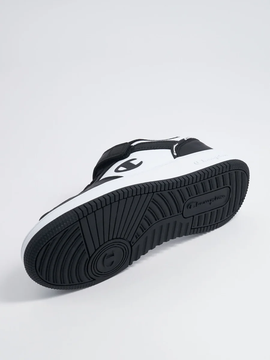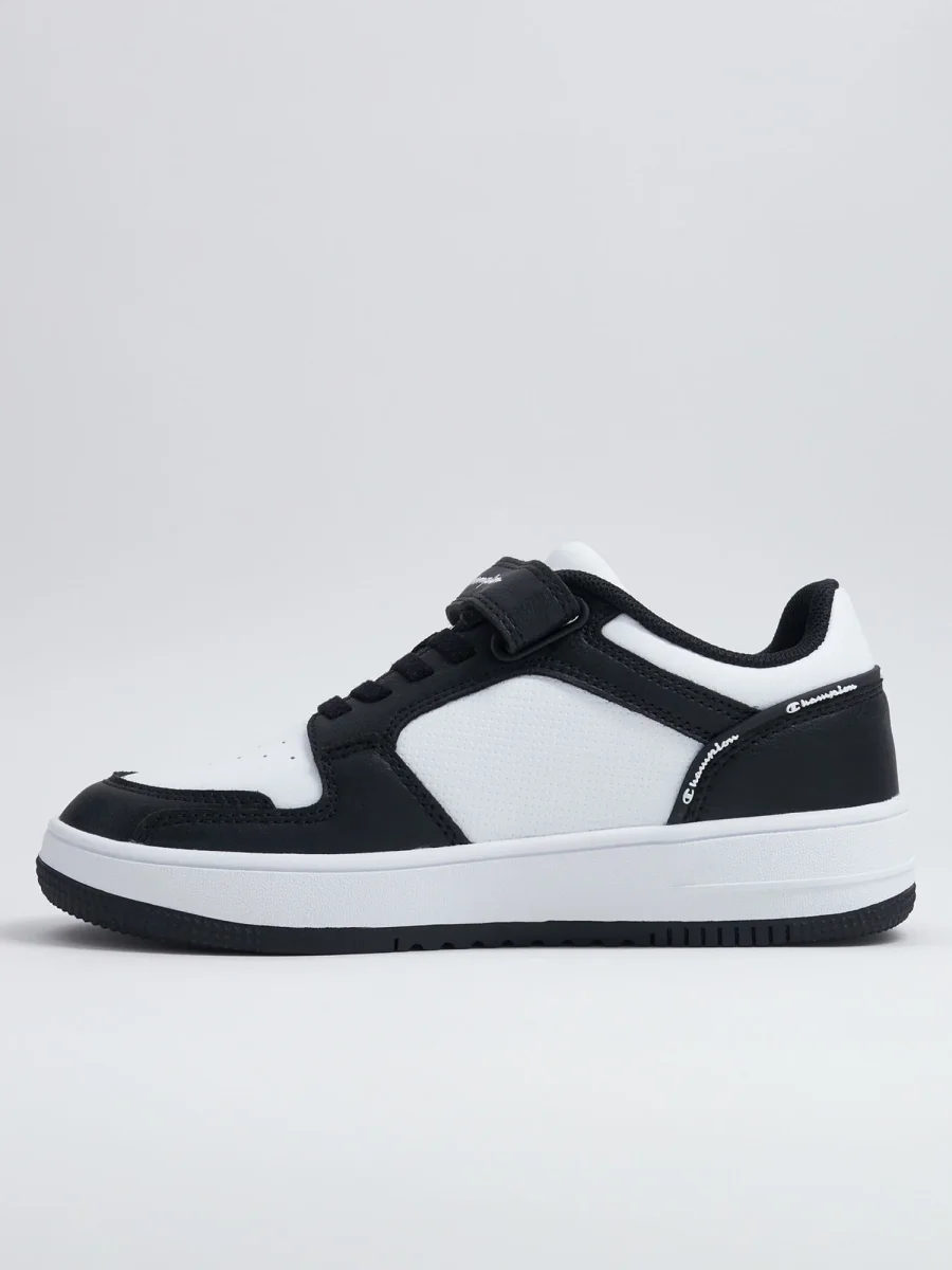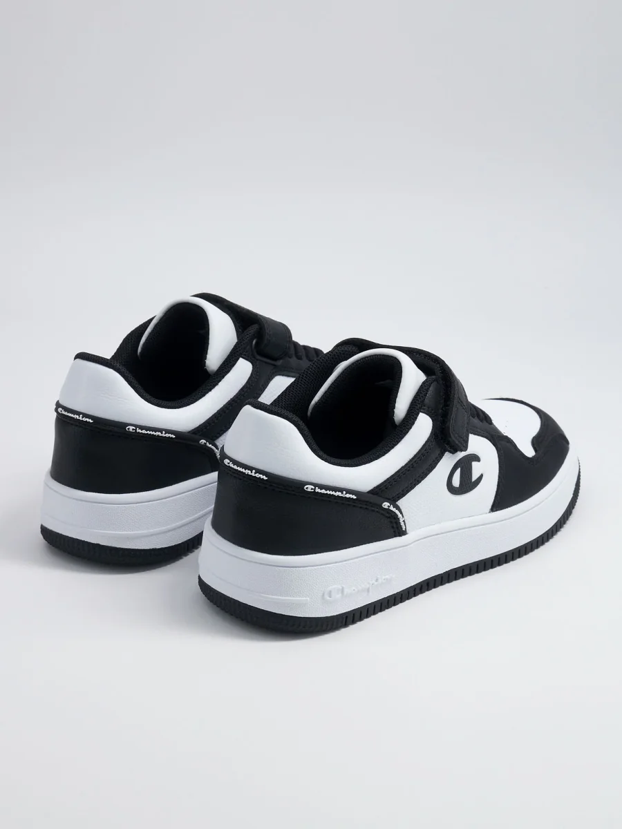 Sneakers Champion da bambino, collezione primavera/estate, realizzate con tomaia in ecopelle, caratterizzate da finiture con logo, lacci elastici e chiusura in velcro, che permette di indossarlo più facilmente. Presenta fodera imbottita interna, rinforzo sul tallone.