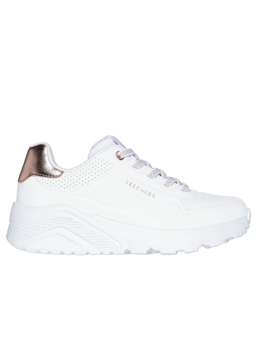 Dai una marcia in più allo stile della tua bambina con le Skechers Street™ Uno Lite, le sneaker fashion che uniscono look di tendenza e massimo comfort. La tomaia in durabuck tecnico con finitura metallizzata dona un effetto brillante e moderno, ideale per completare qualsiasi outfit con un tocco glamour. Il sistema Skechers Adaptive Closure, con lacci elasticizzati, assicura una calzata facile, personalizzata e stabile. All’interno, la soletta Skechers Air-Cooled Memory Foam® offre morbidezza e traspirabilità, per un comfort che dura tutto il giorno.