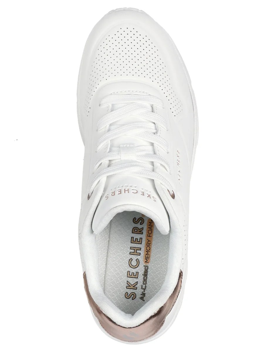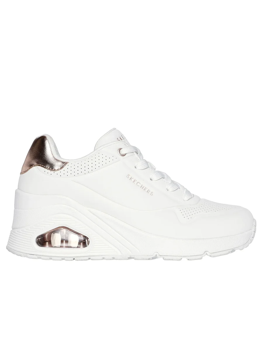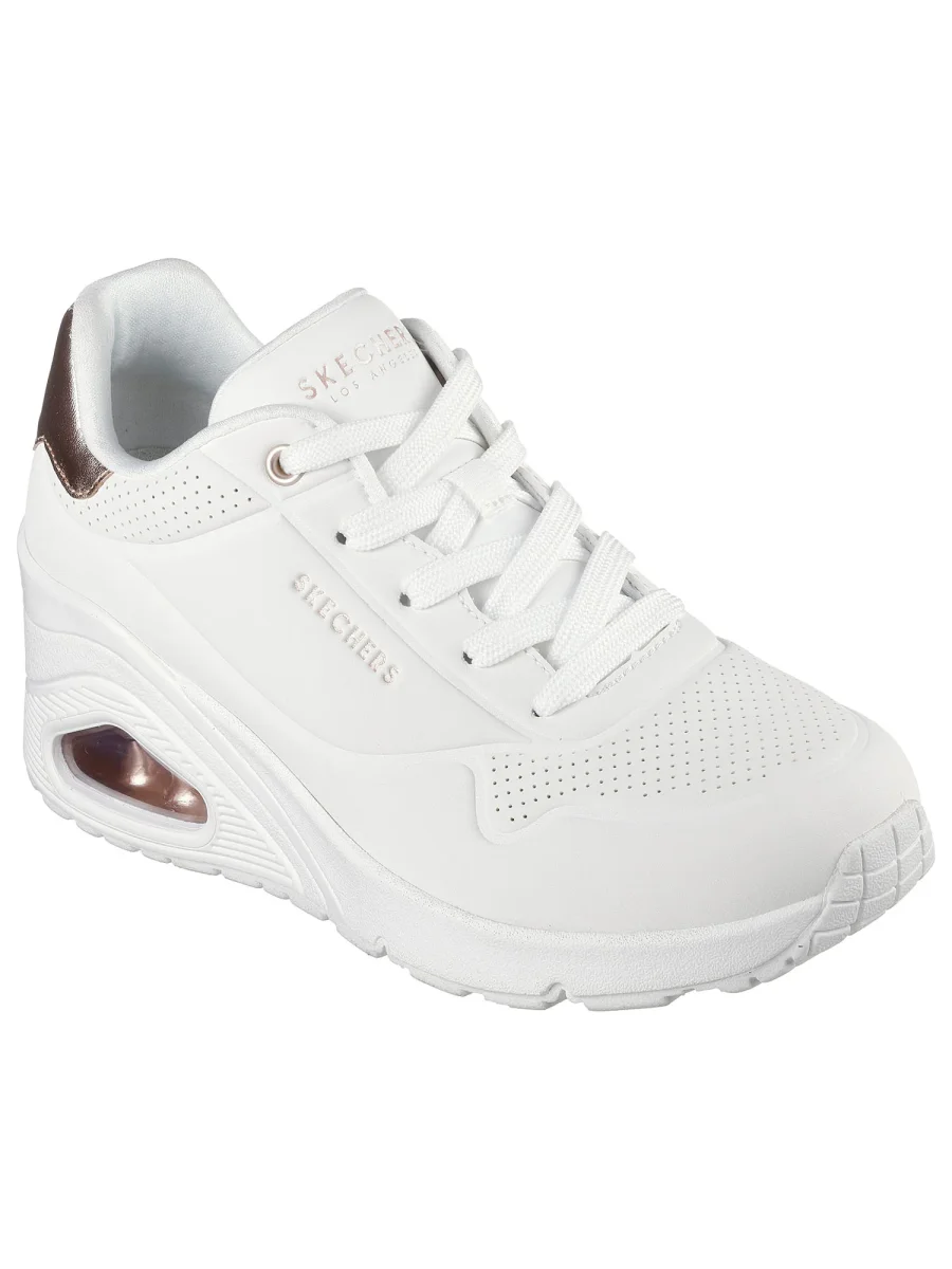 Le Skechers Street™ Uno Wedge – HI Steps della nuova collezione primavera/estate uniscono stile contemporaneo e comfort avanzato in una sneaker pensata per valorizzare ogni look quotidiano. Questo modello è caratterizzata da zeppa interna e platform, ideale per slanciare la figura mantenendo stabilità e praticità durante tutta la giornata.