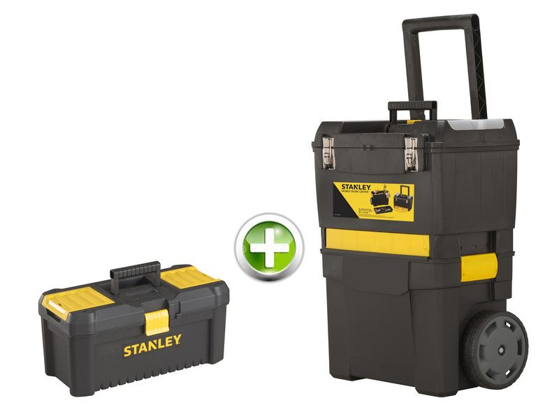 Carrello: cassetta 18?? con 2 organizer inseriti nel coperchio,NLvano portaminuteria a scomparti, ruote grandi e robuste,NLmaniglione estraibile, capacit? di carico kg. 40, cm. 47x30x62 h.NLCassetta: 2 portaminuterie nel coperchio, vaschetta portaattrezziNLinclusa, cm. 32x19x13 h.
