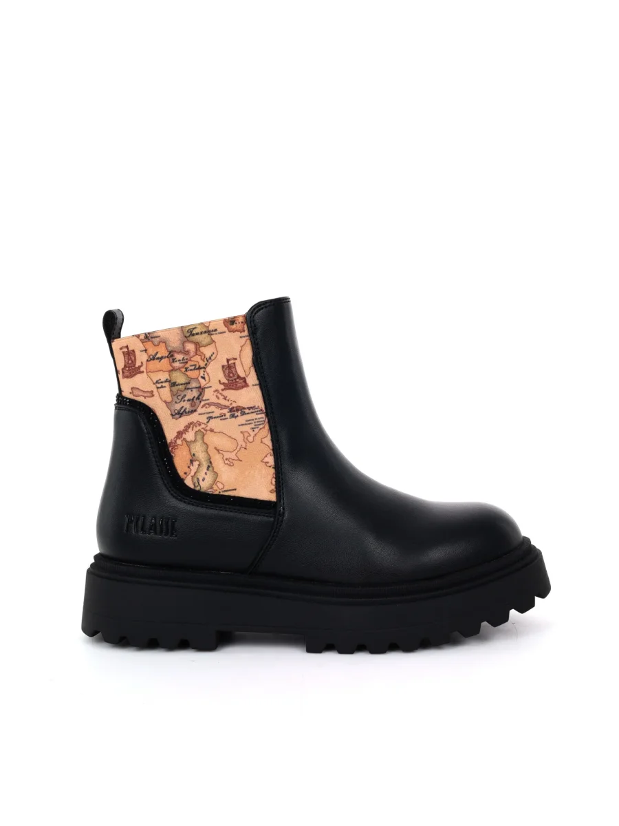 Gli stivaletti da donna firmati Alviero Martini 1^ Classe, sono la scelta perfetta per chi desidera unire personalità e praticità. Parte della nuova collezione autunno/inverno, sono realizzati in nabuk sintetico, si distinguono per gli inserti laterali in tessuto con l’inconfondibile stampa Geo Classic, arricchiti da strass che donano un tocco raffinato. La suola carrarmato in gomma assicura stabilità e comfort in ogni passo, mentre la zip laterale facilita l’indosso senza rinunciare allo stile.