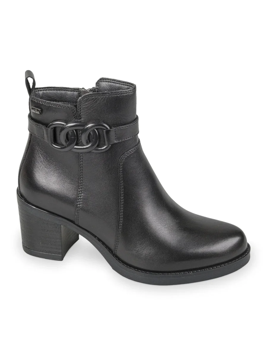 Elegante e confortevole, questo stivaletto Valleverde realizzato in morbida pelle e arricchito da un elegante cinturino con doppio anello tono su tono. La pratica zip laterale rende la calzata semplice e veloce, mentre il tacco largo e stabile dona slancio senza rinunciare al comfort. La suola in gomma antiscivolo assicura sicurezza a ogni passo. Perfetto da indossare con jeans, pantaloni o abiti per look casual chic e urban eleganti.