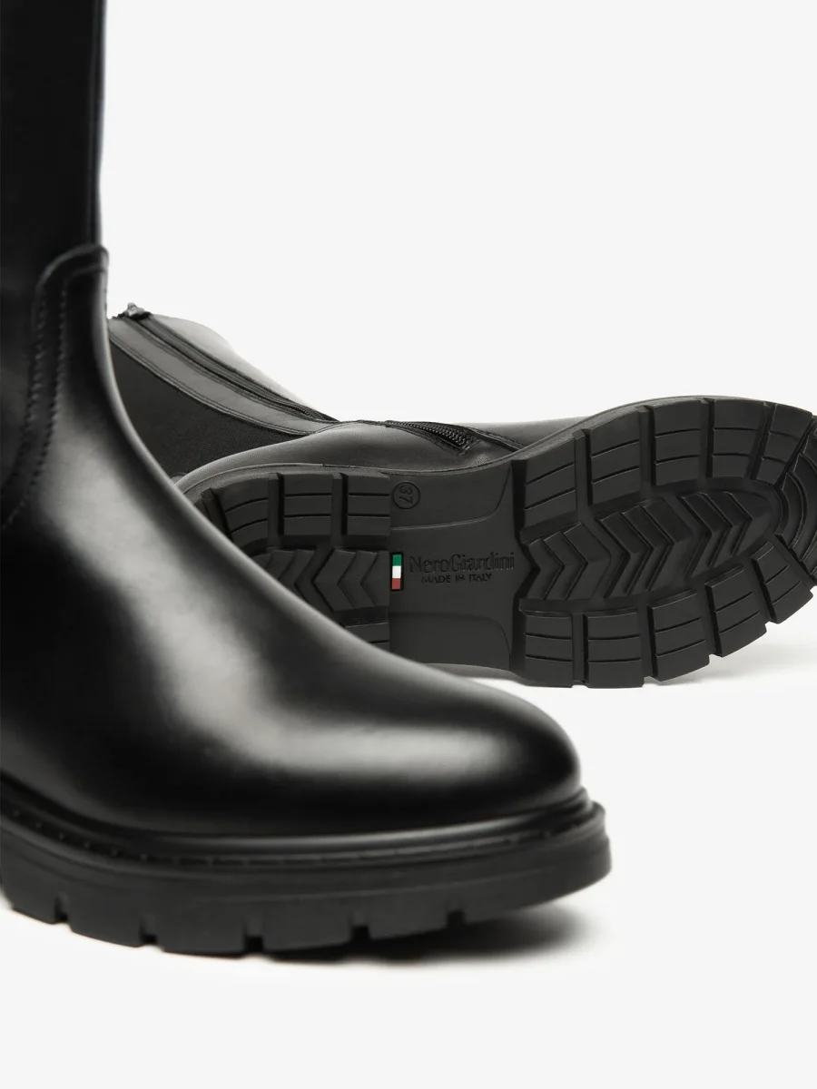Stile deciso e comfort quotidiano si incontrano in questi stivali NeroGiardini da donna, realizzati in Italia con una combinazione di pelle e tessuto di alta qualità. Il design elegante è arricchito da un pratico tacco e dalla chiusura con zip laterale che ne facilita la calzata. L’interno in pelle assicura traspirabilità e benessere, mentre la suola in gomma garantisce stabilità e durata.