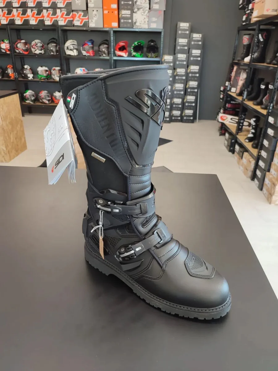 – Flex System: per ottenere una maggiore performance di guida, lo stivale adotta, sulla struttura portante posteriore, un particolare simile al sistema vertebra utilizzato sugli stivali racing, che lo rende più snodato