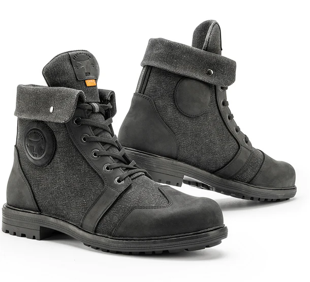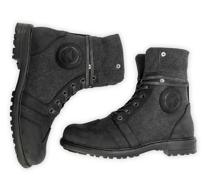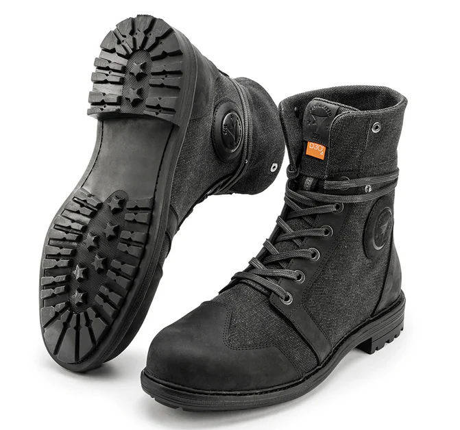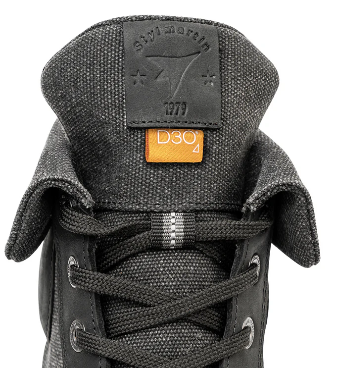malleoli interni in D3O® e PU su entrambi i lati e zona paracambio in pelle |