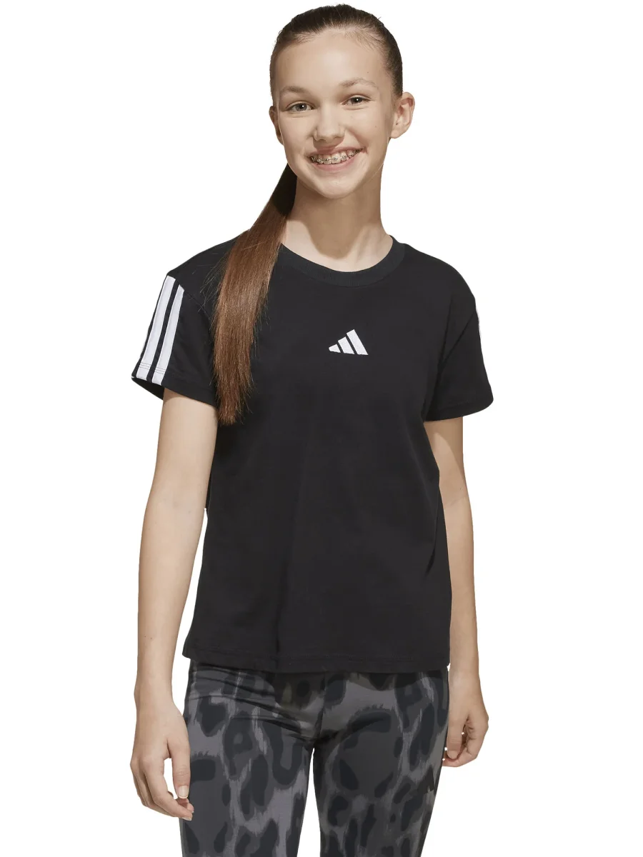 Un capo essenziale su cui puoi contare con questa t-shirt della collezione primavera/estate Adidas da bambina, la cui struttura è in jersey di cotone e basta aggiungere pochi accessori per passare da un look casual a uno più raffinato.