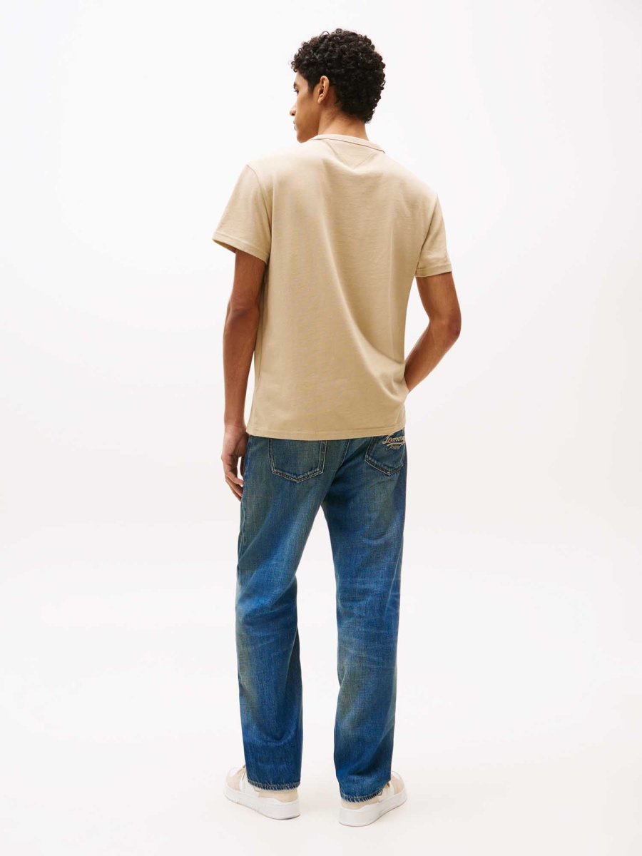La t-shirt a manica corta in cotone per uomo firmata Tommy Jeans, della nuova stagione autunno/inverno, è realizzata in morbido cotone, garantendo una sensazione di freschezza e traspirabilità, perfetta per le giornate più miti. Il design è semplice ed essenziale, con una vestibilità regolare che si adatta alla maggior parte delle fisicità, offrendo libertà di movimento senza risultare troppo aderente.