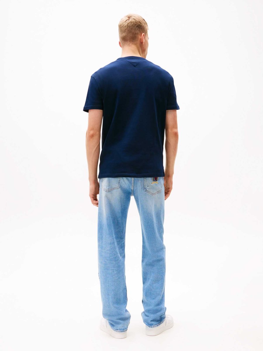 La t-shirt a manica corta in cotone per uomo firmata Tommy Jeans, della nuova stagione primavera/estate, è realizzata in morbido cotone, garantendo una sensazione di freschezza e traspirabilità, perfetta per le giornate più miti. Il design è semplice ed essenziale, con una vestibilità regolare che si adatta alla maggior parte delle fisicità, offrendo libertà di movimento senza risultare troppo aderente.