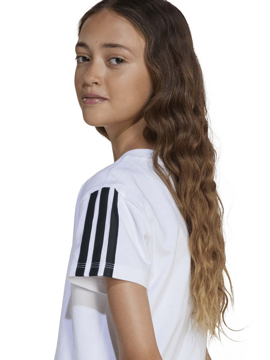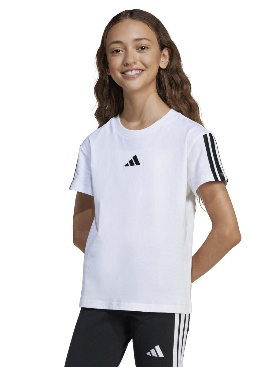 Un capo essenziale su cui puoi sempre contare: la t-shirt Adidas da bambina, parte della collezione Primavera/Estate, è realizzata in morbido jersey di cotone per comfort e traspirabilità. Perfetta da sola per un look casual, basta aggiungere pochi accessori per trasformarla in un outfit più raffinato e alla moda.