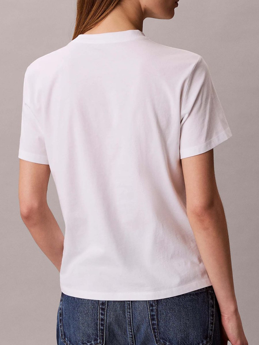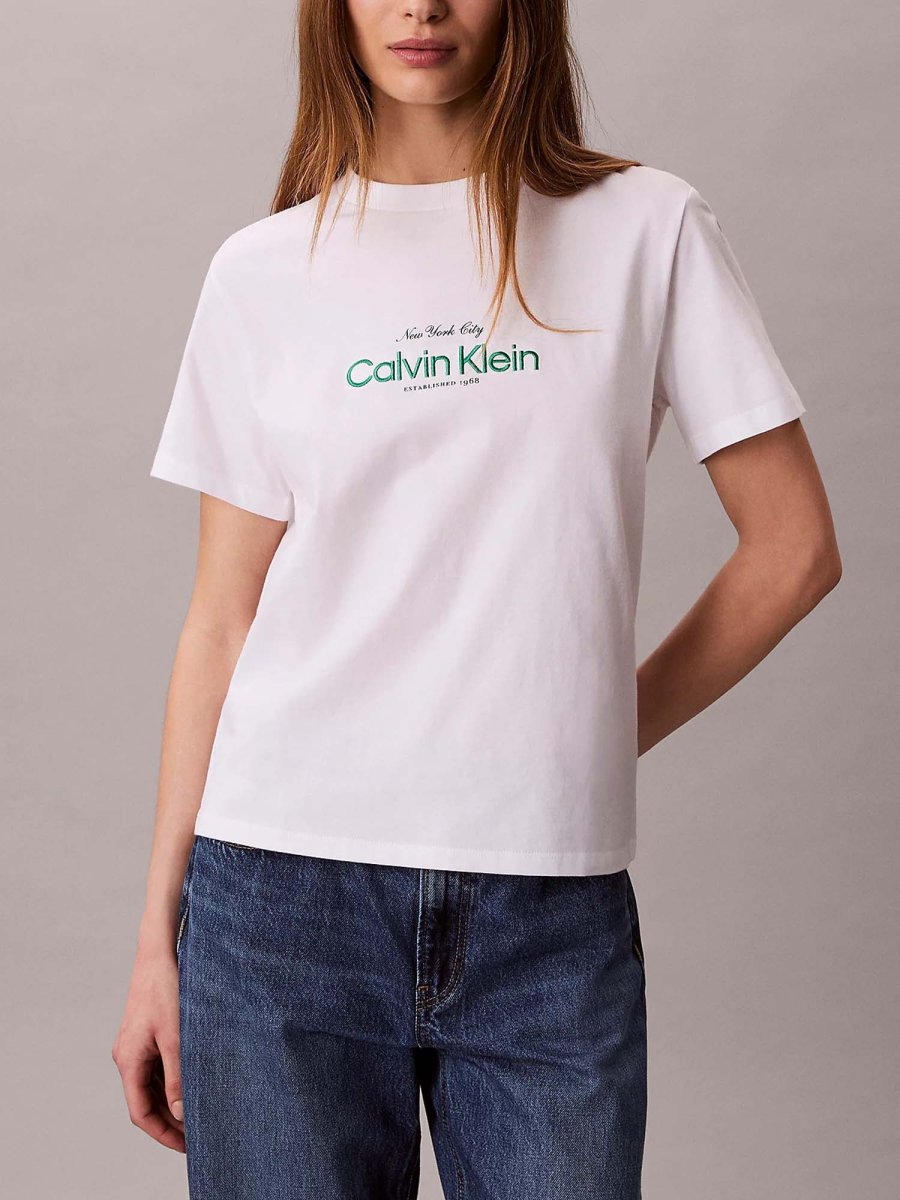Questa t-shirt da donna della collezione Primavera/Estate Calvin Klein unisce comfort e stile essenziale. Realizzata in puro jersey di cotone, assicura morbidezza, traspirabilità e una sensazione piacevole sulla pelle. Il modello presenta un girocollo classico, maniche corte e taglio regolare, garantendo una vestibilità versatile e comoda. Il dettaglio distintivo è il logo Calvin Klein stampato sul petto, che aggiunge un tocco iconico e moderno senza appesantire il design. Perfetta da abbinare a jeans, pantaloni o gonne, questa t-shirt è un capo pratico e facile da inserire in qualsiasi guardaroba.