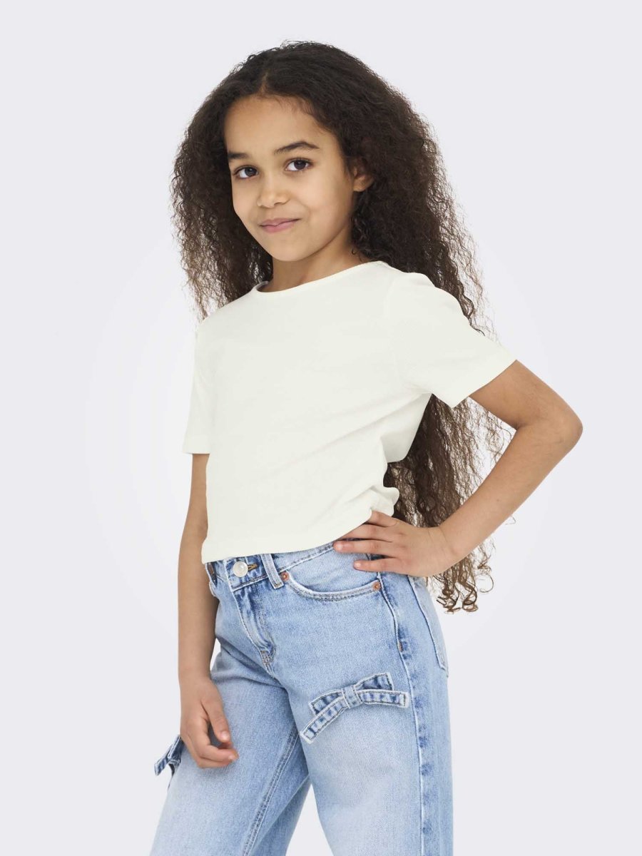 Only Jr T-shirt 15342476 Cloud – una maglietta in jersey a costine progettata per offrire comfort e stile ai più piccoli nei mesi caldi.