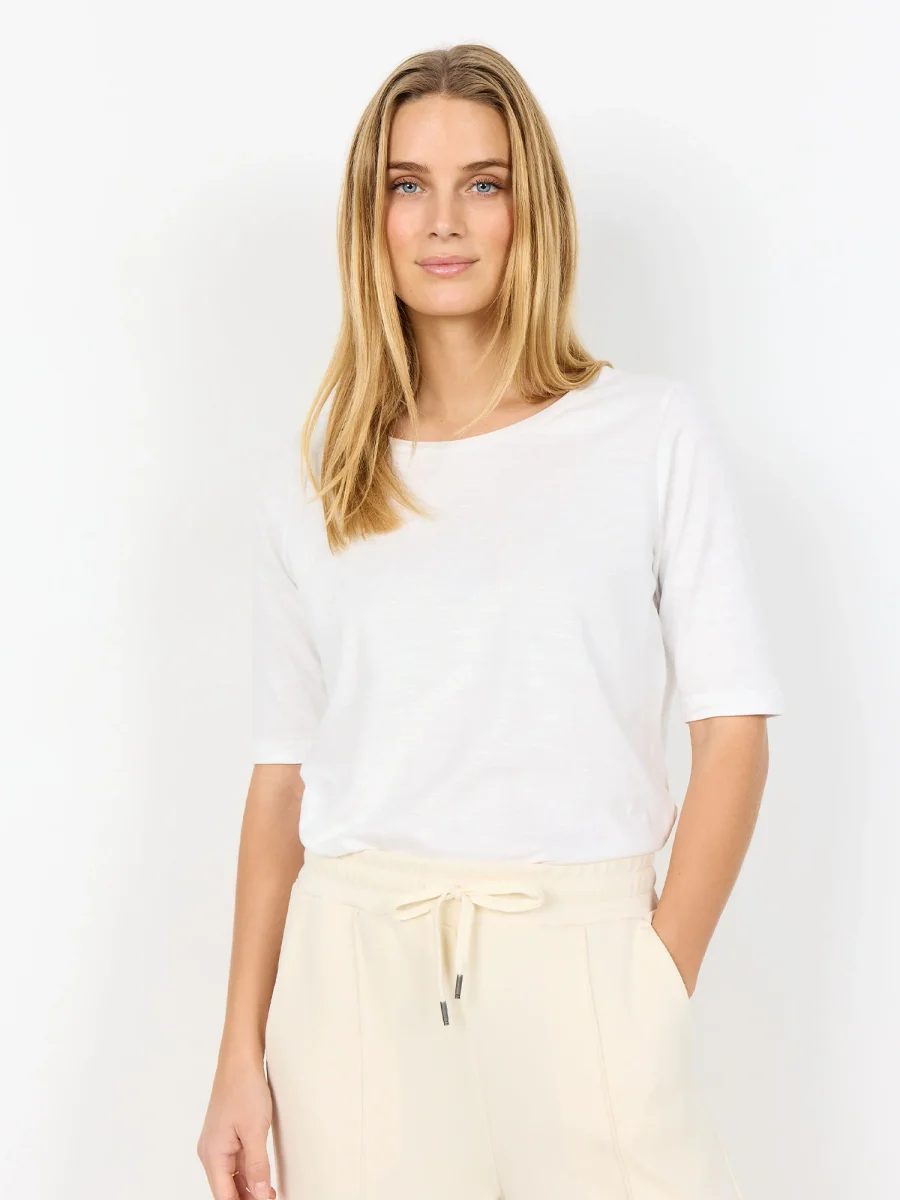 La t-shirt basic da donna Soya Concept, della nuova collezione primavera/estate, è un capo essenziale dal comfort naturale.