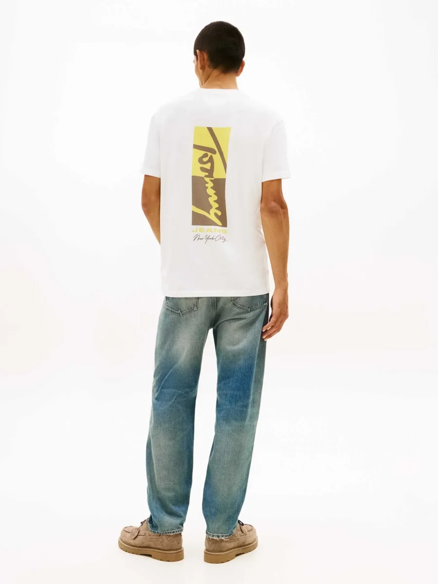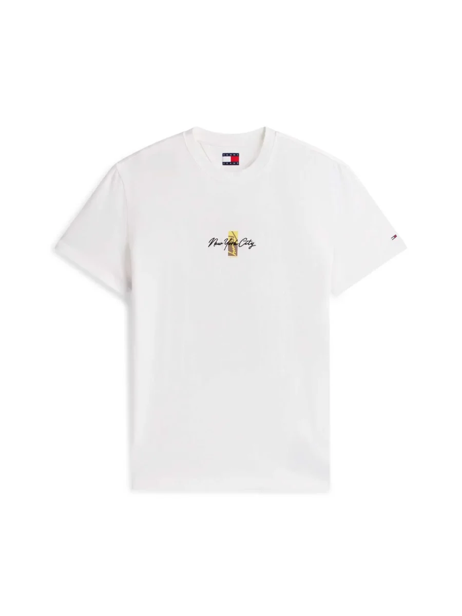 La T-shirt uomo Tommy Jeans della collezione Primavera/Estate combina stile moderno e sostenibilità, grazie al cotone rigenerato al 100%. Il design essenziale è arricchito dal logo ricamato sul petto, che dona un tocco distintivo al look casual.