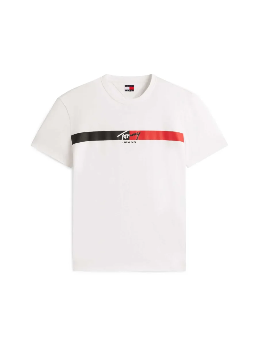 La T-shirt uomo Tommy Hilfiger della nuova collezione Primavera/Estate combina stile iconico e moderno con un approccio sostenibile, grazie al 100% cotone rigenerato. Il tessuto morbido e traspirante garantisce comfort per tutto il giorno, mentre il taglio regular fit si adatta a tutte le corporature. La stampa frontale con logo e la banda a contrasto aggiungono un dettaglio contemporaneo e distintivo.