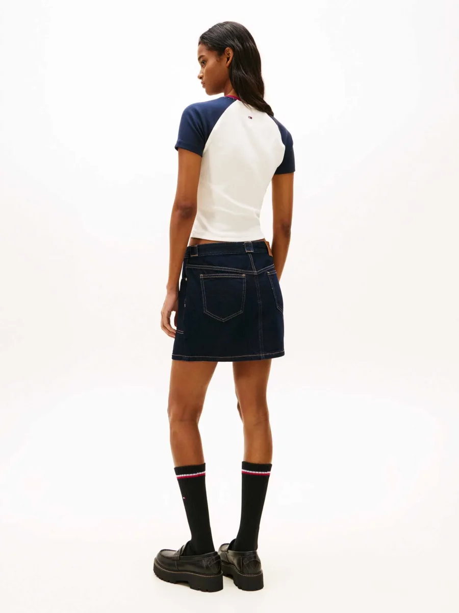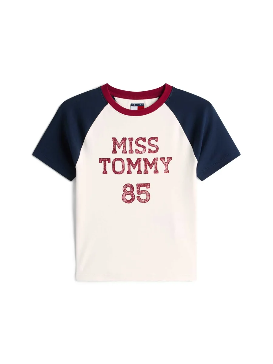 La T-shirt Donna Tommy Hilfiger Tommy Jeans Logo Slim Raglan unisce uno stile sportivo e retrò grazie alle maniche raglan color-block e al logo vintage sul petto. Realizzata in cotone rigenerato con elastan, offre una vestibilità slim morbida e leggermente stretch, che segue i movimenti del corpo garantendo comfort durante tutta la giornata. La struttura a coste aggiunge un tocco originale e distintivo al capo.