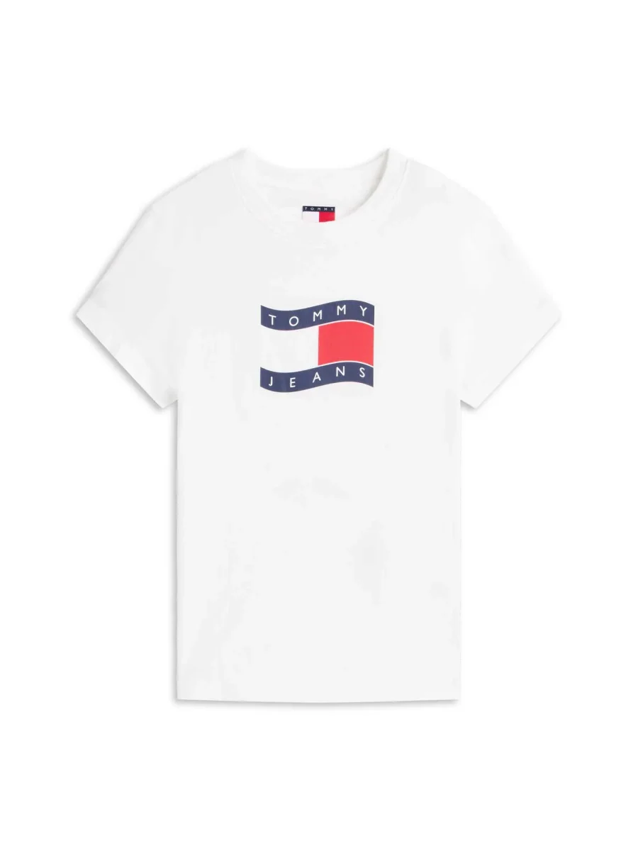La T-shirt da donna Tommy Jeans della nuova collezione Primavera/Estate unisce stile casual e sostenibilità grazie all’utilizzo di cotone rigenerato di alta qualità. Realizzata in 100% cotone rigenerato, con maniche corte e girocollo classico, garantisce comfort, traspirabilità e rispetto per l’ambiente.