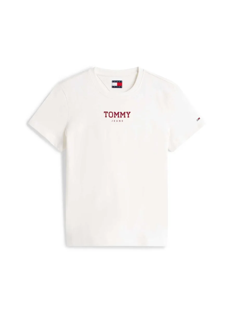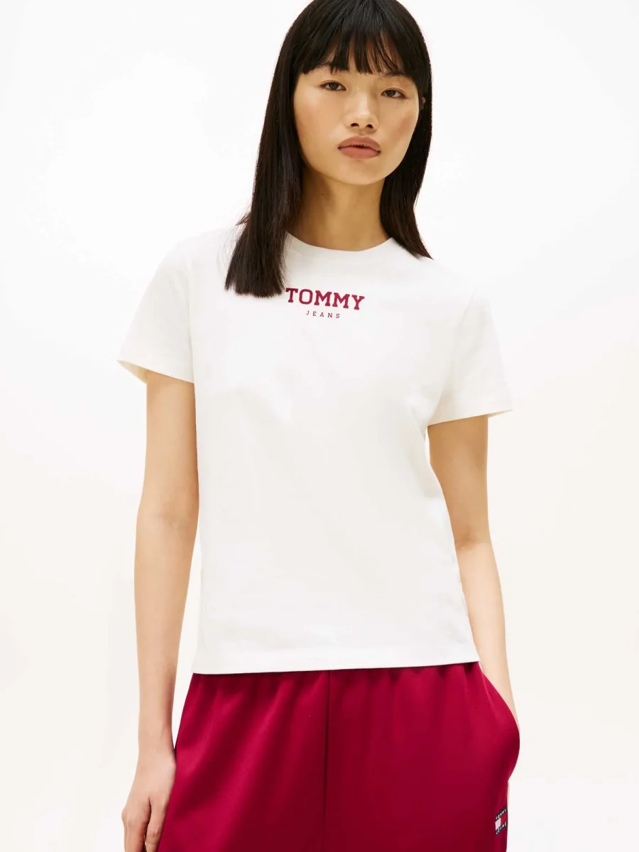 La T-shirt donna Tommy Jeans della collezione Primavera/Estate è il capo ideale per un look casual, moderno e versatile. Realizzata in cotone morbido e traspirante, garantisce comfort per tutto il giorno e una vestibilità piacevole che si adatta naturalmente alla silhouette. Il design essenziale è valorizzato dal logo Tommy Jeans sul petto, dettaglio iconico che aggiunge carattere e riconoscibilità al capo.